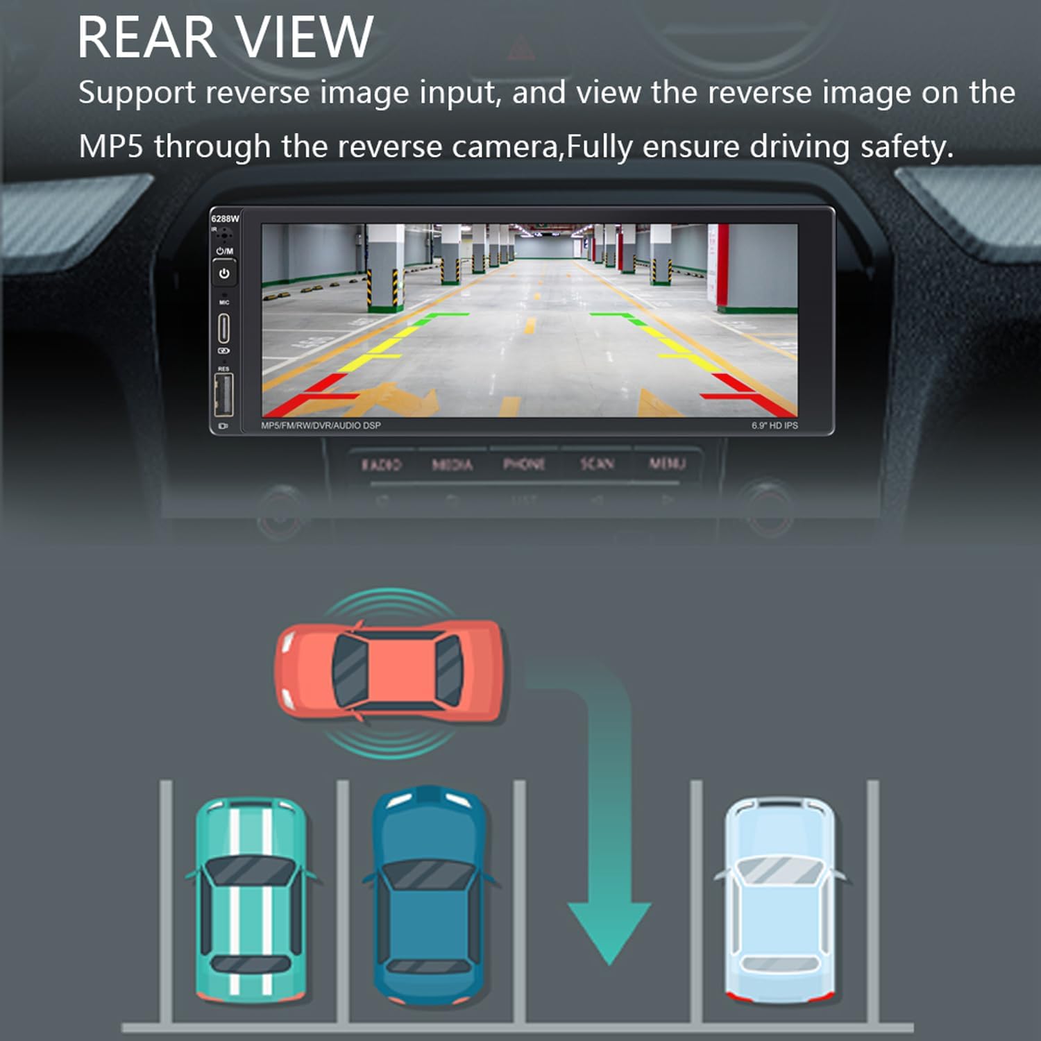 Pantalla HD de 1080p: La Radio de Coche de Un Solo Din Tiene una Pantalla Táctil de 6,9 Pulgadas que admite Calidad de Imagen de Alta Definición, admite la Experiment Visible de Reproducción de Video de 1080p. Reproduzca Audio de Alta Fidelidad en Unidades USB, Entradas Aux, Bluetooth y otros medios. Salida perfecta de canales de cuatro. (ESTE PROCTO NO ESTÁ EQUIPADO CON UNA CÁMARA Retrovisora, Debe Comarla Usted Mismo).