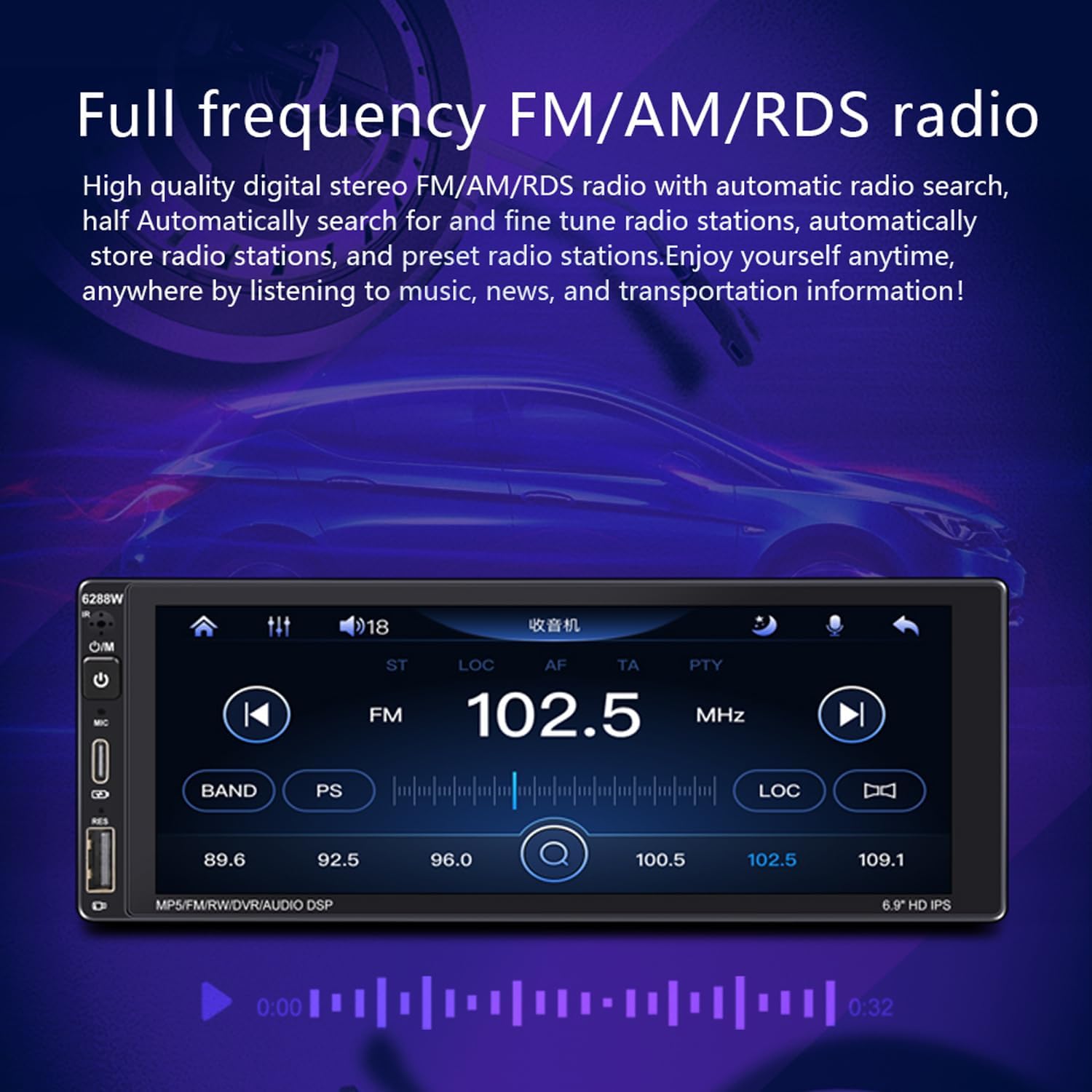 Radio de Coche 1 Din de Alta Definición de 6,9 Pulgadas