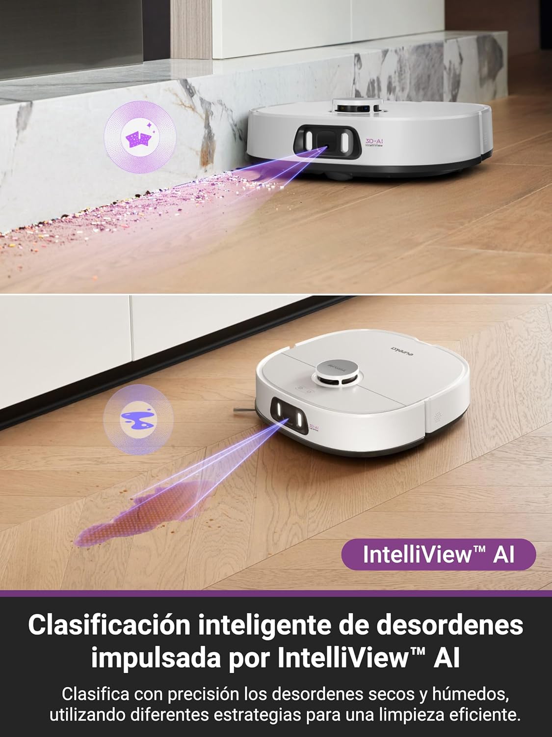 Limpieza avanzada de bordes con ScrubEIntelligent Mess Classification Desarrollado por IntelliView Axtend: Este robotic de limpieza reconoce y clasifica más de 150 tipos de suciedad, optimizando las estrategias de limpieza y garantizando la evitación necesaria de obstáculos.