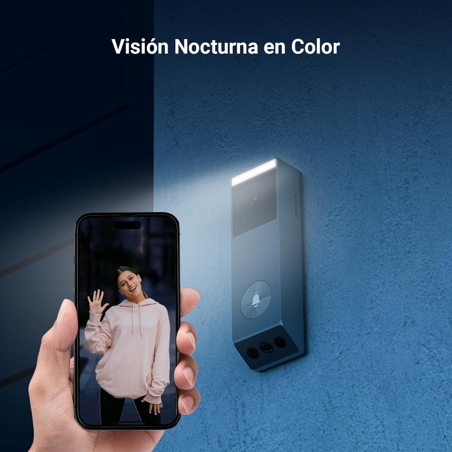 【100% inalámbrico y visión nocturna en colour】Este timbre es completamente inalámbrico y se puede instalar en cualquier puerta de entrada sin necesidad de cableado. Si vives en una zona nublada también se puede conectar mediante cable. El LED incorporado ilumina el pasillo y proporciona una visión nocturna de colores claros.