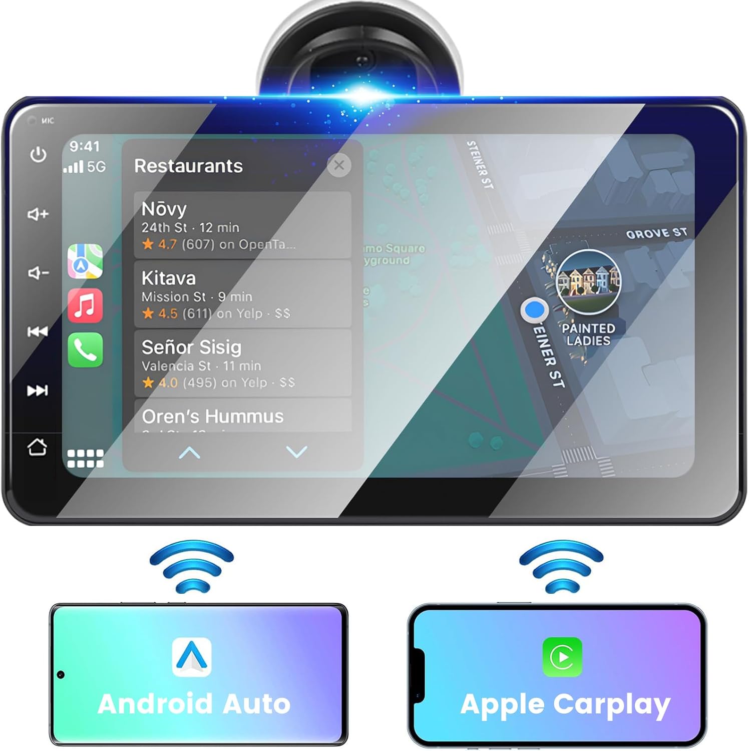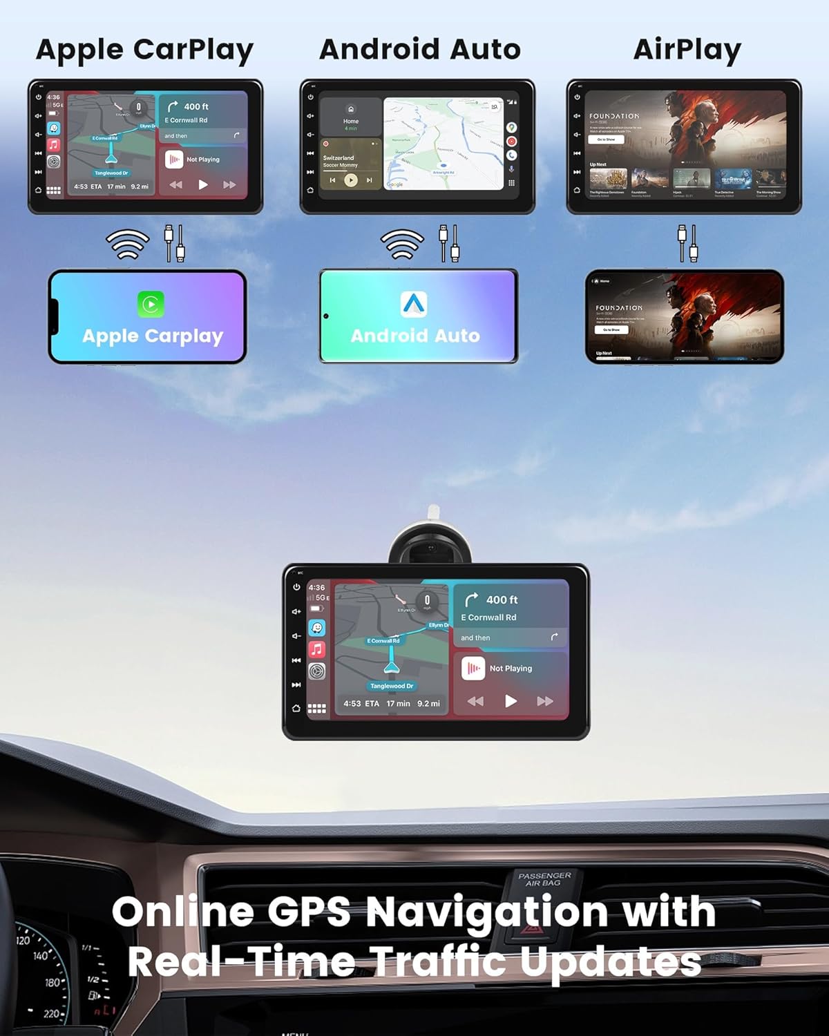 【Sistema de navegación GPS incorporado】: Admite múltiples aplicaciones de navegación como Apple Maps, Google Maps, Waze, TomTomGO, and many others. Incluso sin pink, aún puede usar el GPS incorporado para navegar con precisión y brindarle la mejor selección de ruta para garantizar una experiencia de conducción fluida.