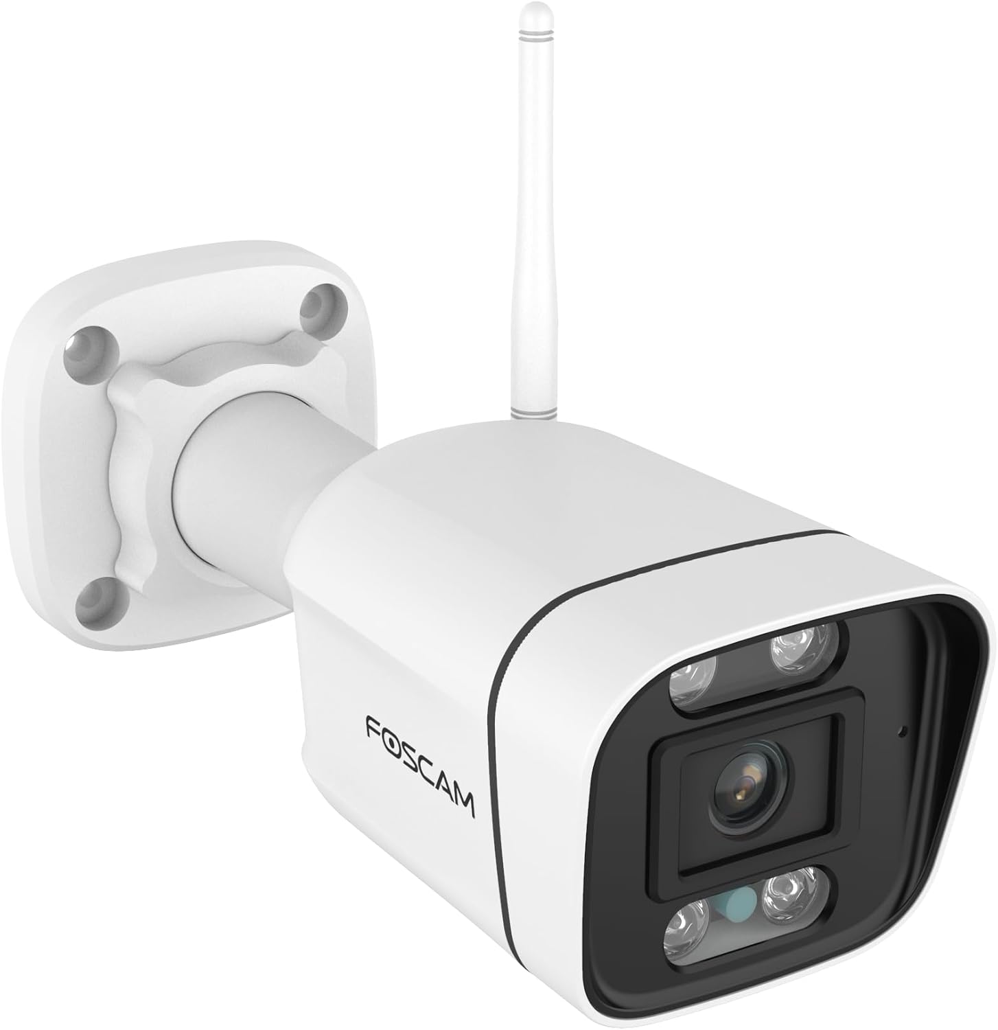 Cámara IP exterior V5P con visión norte a coloration, audio bidireccional y sirena de alarma. WiFi twin 2.4G/5G Dispone de detección de personas y vehículos. Podrás vincular e interactuar con otras cámaras Foscam de nueva generación desde la App creando rutinas entre ellas. La cámara exterior IP66 con buen diseño hará que su hogar o negocio sea más seguro.
