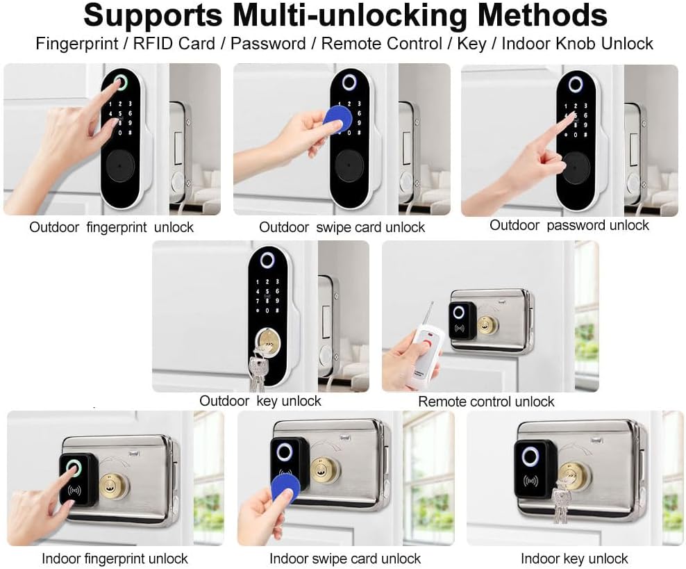 🔒Cerradura Inteligente de Entrada sin llave con Múltiples Formas de desbloqueo:Huella dactilar, código de acceso, llavero, mandos a distancia,llave mecánica. Es ideally suited para casas, hoteles, apartamentos, puertas de entrada de garaje, trasteros, almacenes, sótanos, dormitorios, and many others.