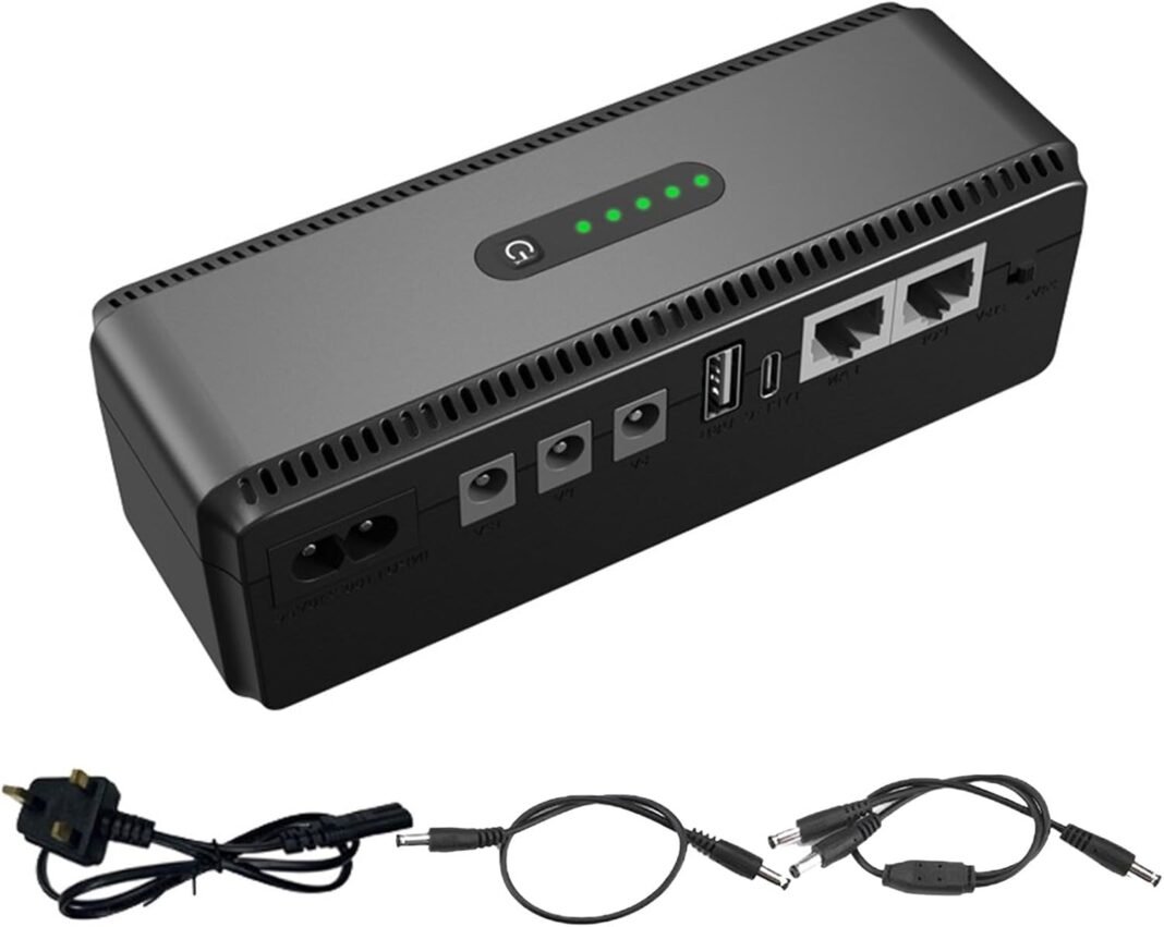 ♥Admite múltiples dispositivos: mantenga sus dispositivos funcionando durante cortes inesperados con este suministro de batería ininterrumpible. Con una batería incorporada de 10400 mAh, puede admitir varios dispositivos simultáneamente, lo que garantiza un suministro ininterrumpido de batería para todos sus dispositivos.