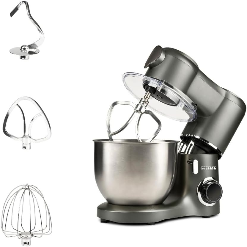 Accesorios incluidos: gancho amasador y batidora de aluminio, batidor de acero inoxidable (o batidora planetaria)