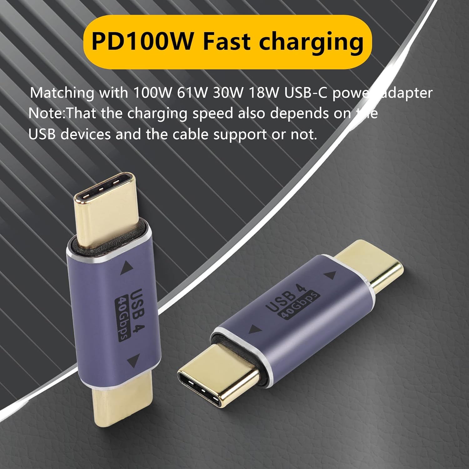 Adaptador USB C macho a USB C macho: apto para todos los dispositivos tipo C, no solo admite carga, sincronización de datos, transferencia de audio y video, sino también un nuevo adaptador USB 4.