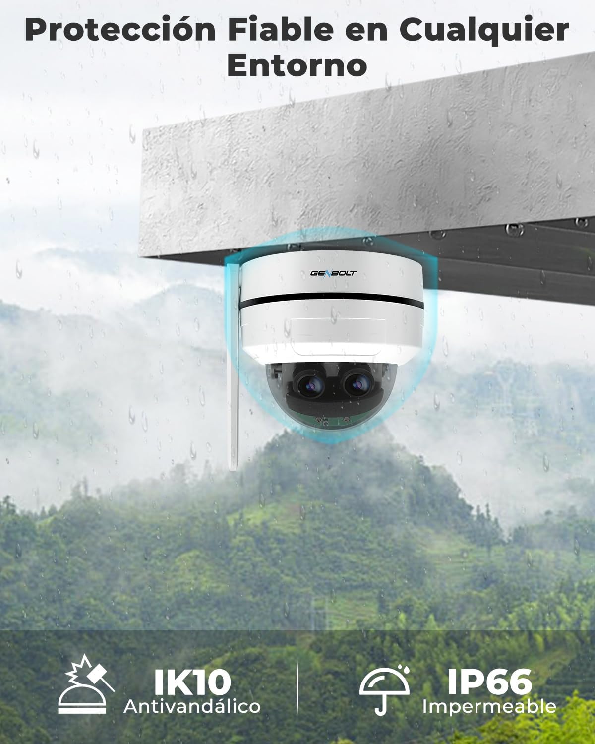【IK10 a prueba de vandalismo】CCTV GENBOLT construido de alta resistencia con impermeabilización IP66 y resistencia al vandalismo IK10, soportando condiciones climáticas adversas y vandalismo. Ofrece vigilancia inside y exterior fiable, que no se ve afectada por actos de vandalismo.