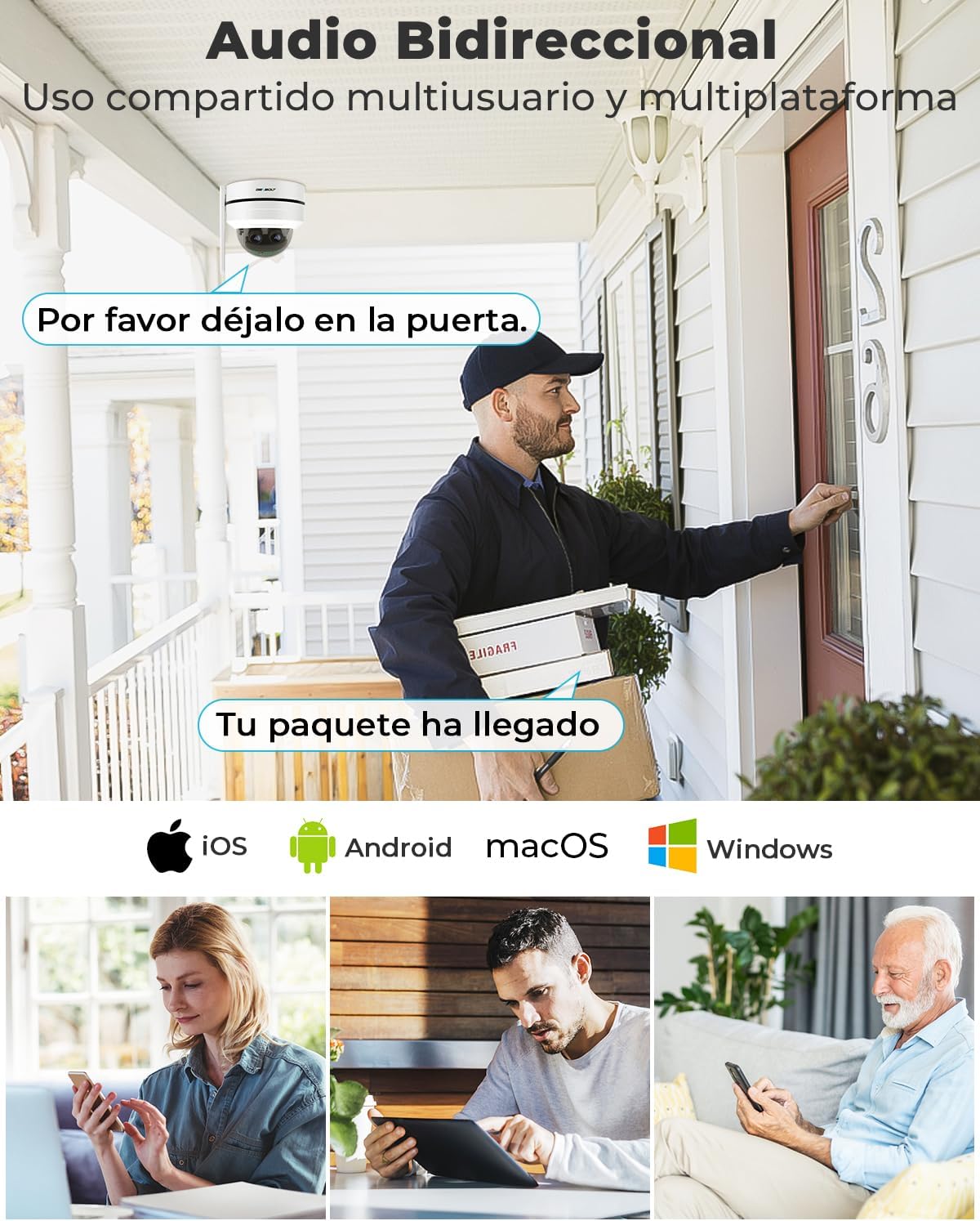 【2.5K HD y conversación bidireccional】La cámara de seguridad WiFi entabla conversaciones directas con personas cercanas a la cámara de vigilancia a través de una conversación bidireccional, y con su función de visión nocturna infrarroja (no visión nocturna en shade), ahora puede capturar imágenes claras incluso en completa oscuridad.