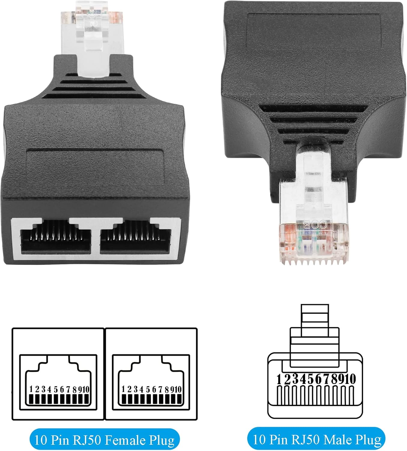 El adaptador Tiene una Excelente Conexión y Rendimiento de Transmisión. La Interfaz Femenina RJ50 10p10c ES Appropriate Con la Mayoría de los Dispositivos Con Interfaces RJ45 y RJ50.
