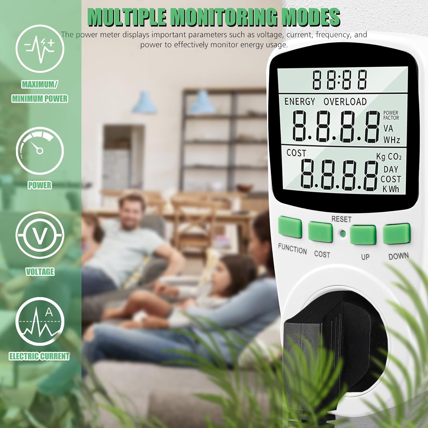 Materials De Alta Calidad: El Medidor de Consumo Eléctrico está fabricado con materiales duraderos y de alta calidad que resisten el uso diario. El Medidor de Consumo Eléctrico es robusto, garantizando un uso prolongado sin comprometer sus funcionalidades.