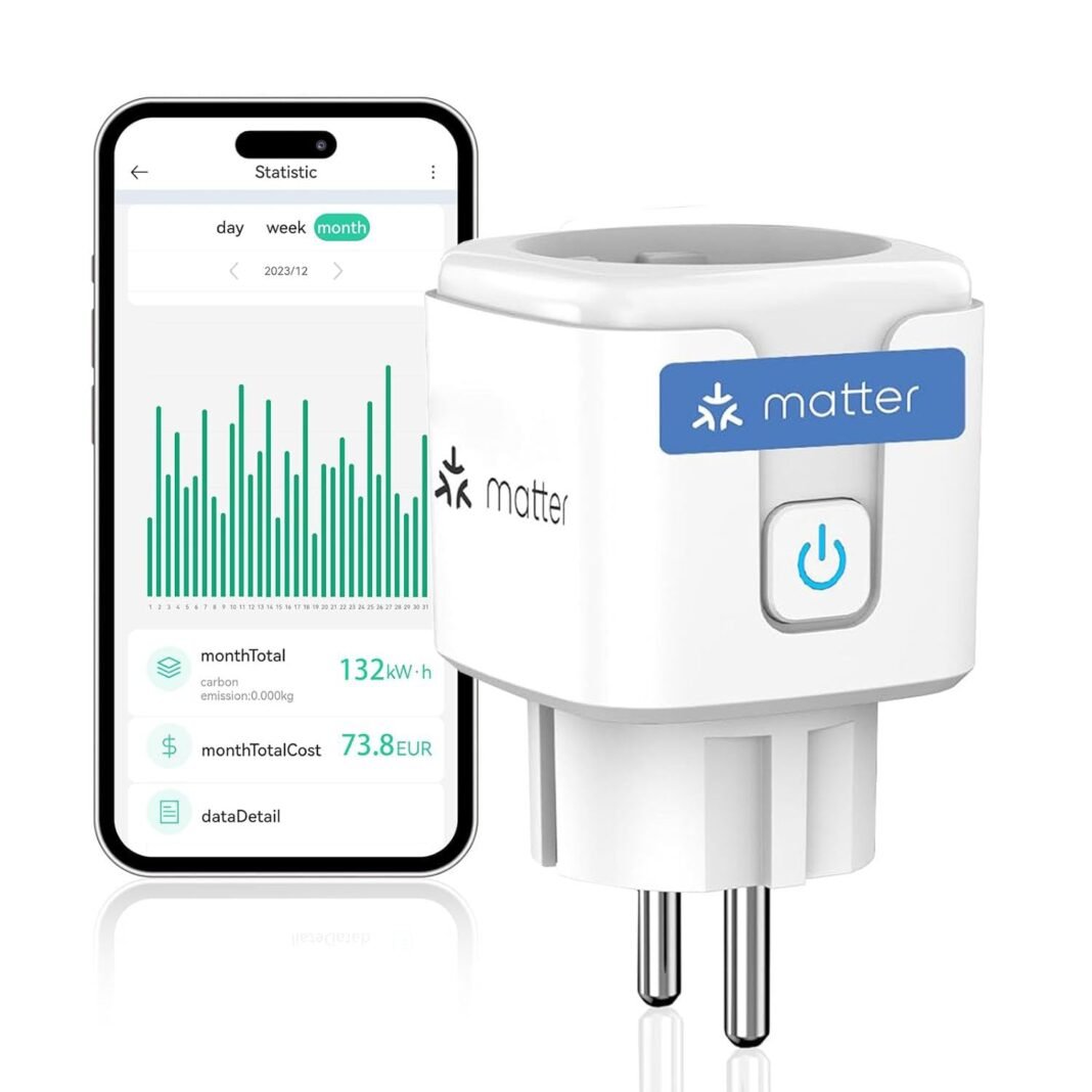 Enchufe Inteligente Greensun Matter Con Consumo de Energía, Enchufe Wlan Con Medidor de Electricidad para la la Eléctrica del Balcón, Funciona Con Apple Homekit, Alexa y Google, Asistente de hogar Good Plug 16a, 1 Pieza.