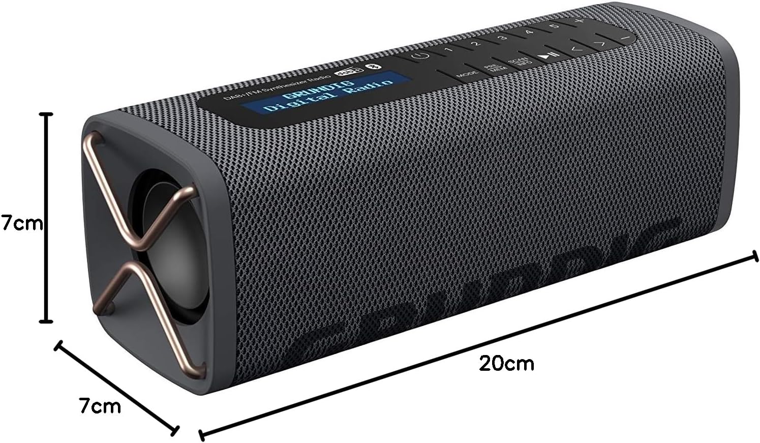 Grundig GBT Band Black: Altavoz Bluetooth Con Radio Dab+ Y FM, Alcance de 30 Metros, Más de 8 Horas de Reproducción, Batería de 3,7 V Con 2000 Mah, Versión Bluetooth V5.0