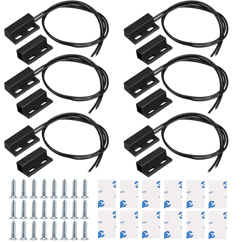 Contenido del Paquete: 6 * Interruptores Magnética para puerta, 12 * Pegatinas adhesivas y 24 * Tornillos.