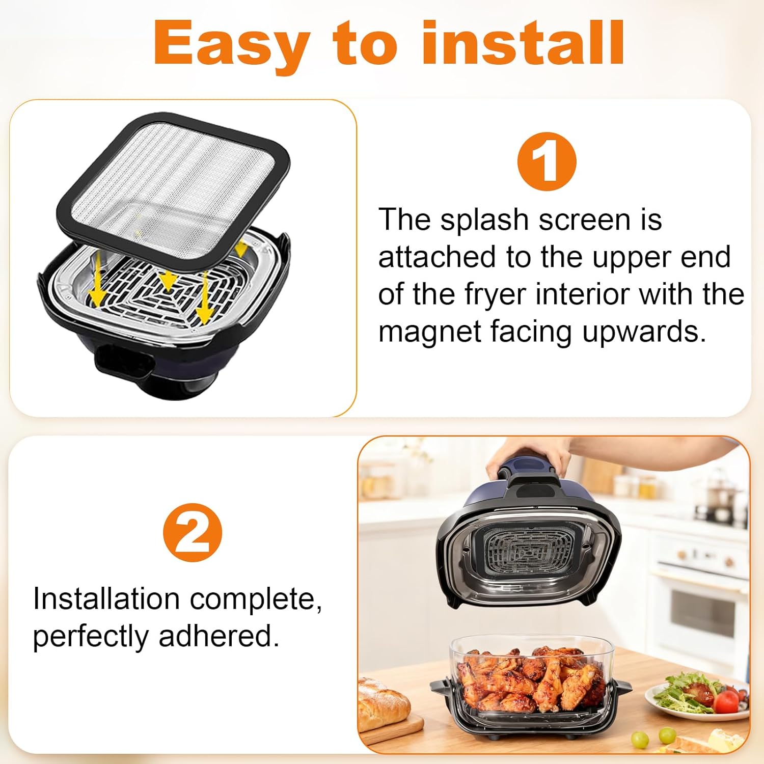 COMPATIBILIDAD PERFECTA: este protector contra salpicaduras para freidora está diseñado específicamente para la freidora de aire Ninja Crispi, lo que garantiza un ajuste perfecto para los modelos FN101GY/FN101SG/FN101ST. Se adhiere magnéticamente al elemento calefactor, protegiéndolo eficazmente de la grasa y las salpicaduras de alimentos sin restringir la circulación del aire. ¡Un accesorio imprescindible para tu freidora!