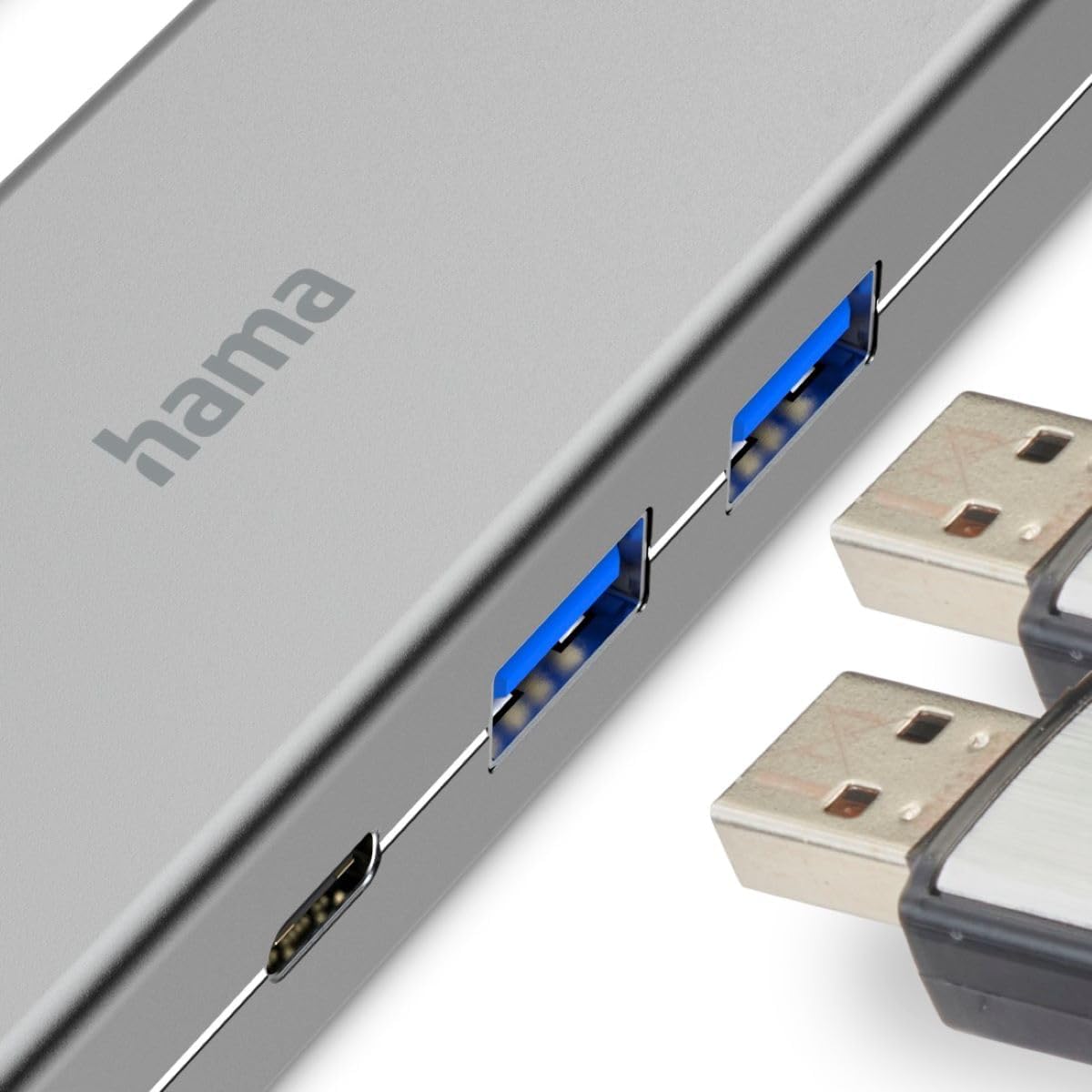 Funcional: Conecta fácilmente múltiples dispositivos a la vez gracias a este multipuerto USB-C de Hama. Dispone de suficiente espacio entre cada puerto para que quepan todos los dispositivos.