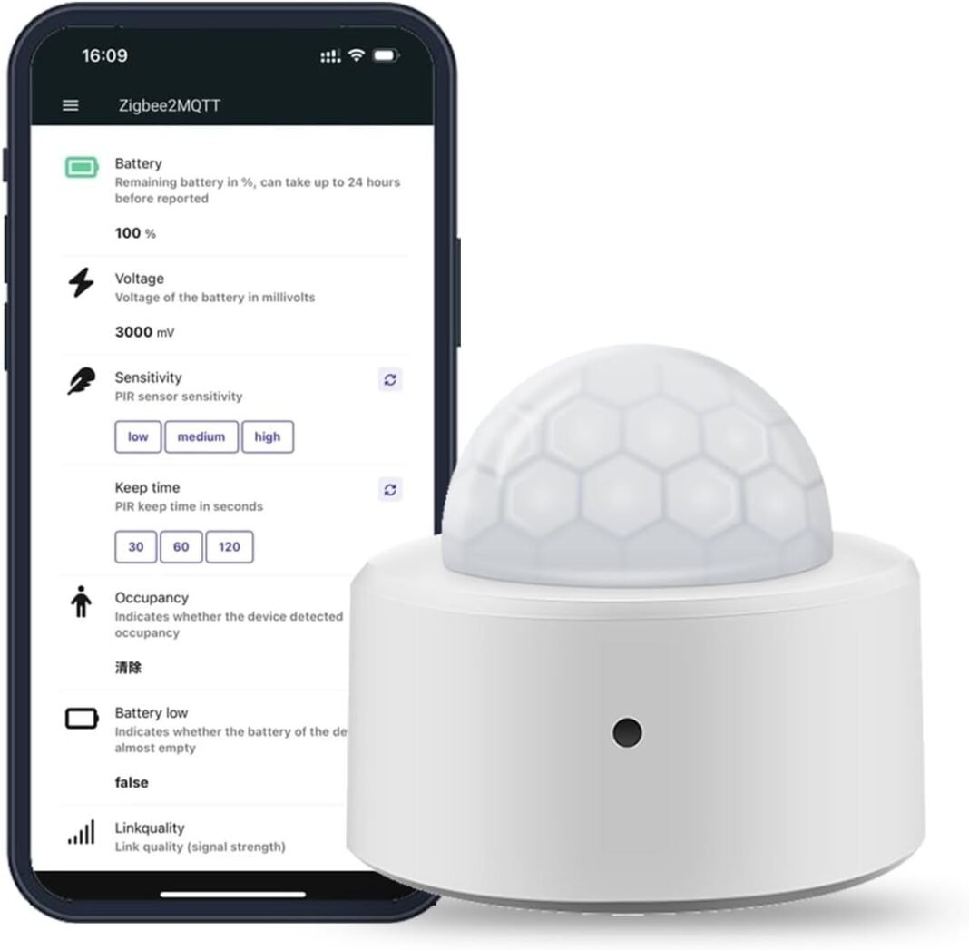 Haozee Zigbee PIR Sensor de movimiento inteligente, alta sensibilidad, detección en tiempo actual, requiere concentrador Zigbee, suitable con Residence Assistant y Zigbee2MQTT