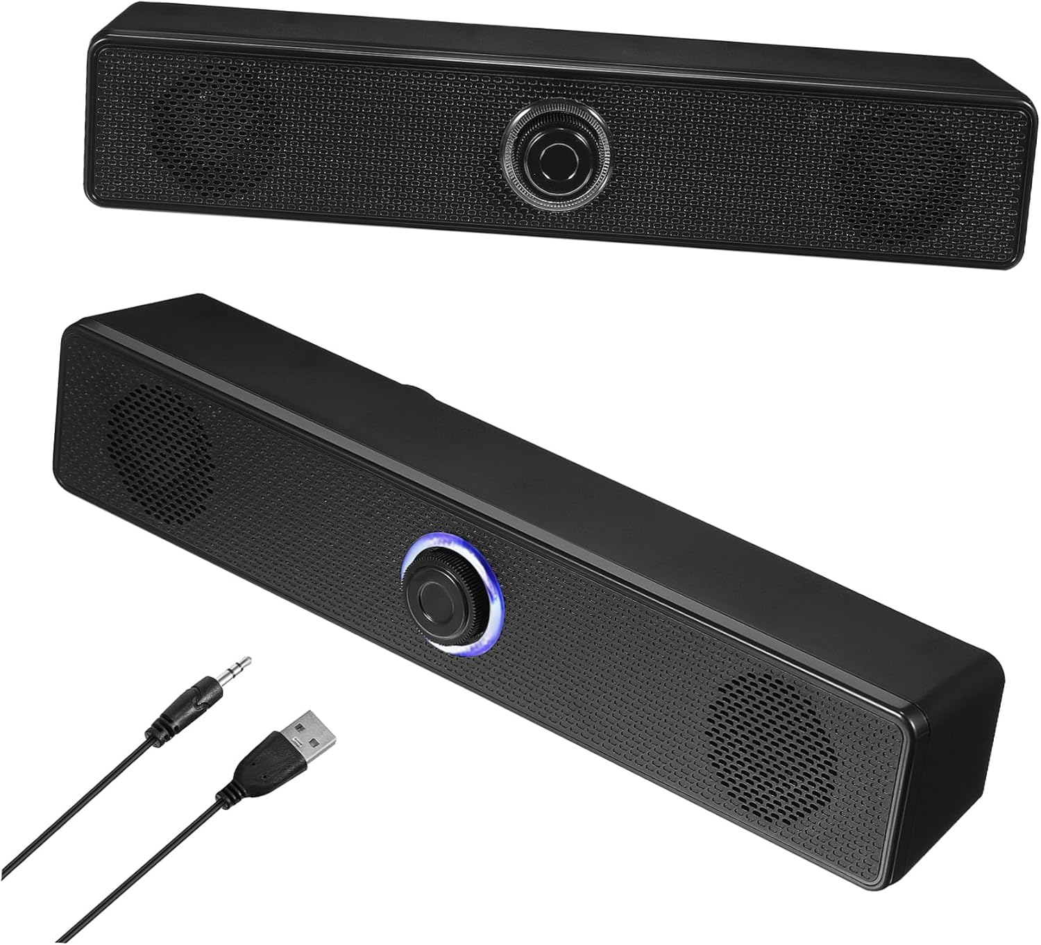 – Fácil de usar: con simples conexiones por cable, puede disfrutar de su música favorita sin una configuración o instalación complicada de la mini barra de sonido para PC.