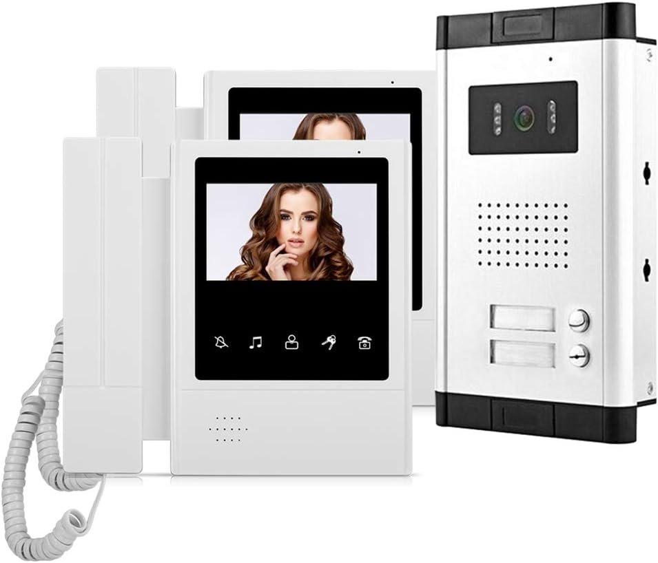 Hfeng Sistema Intercomunicación Timbre Video Puerta de 4.3 «2 Monitorios + Cámara de Visión Nocturna 700tvl para 2 Apartamentos/Familias