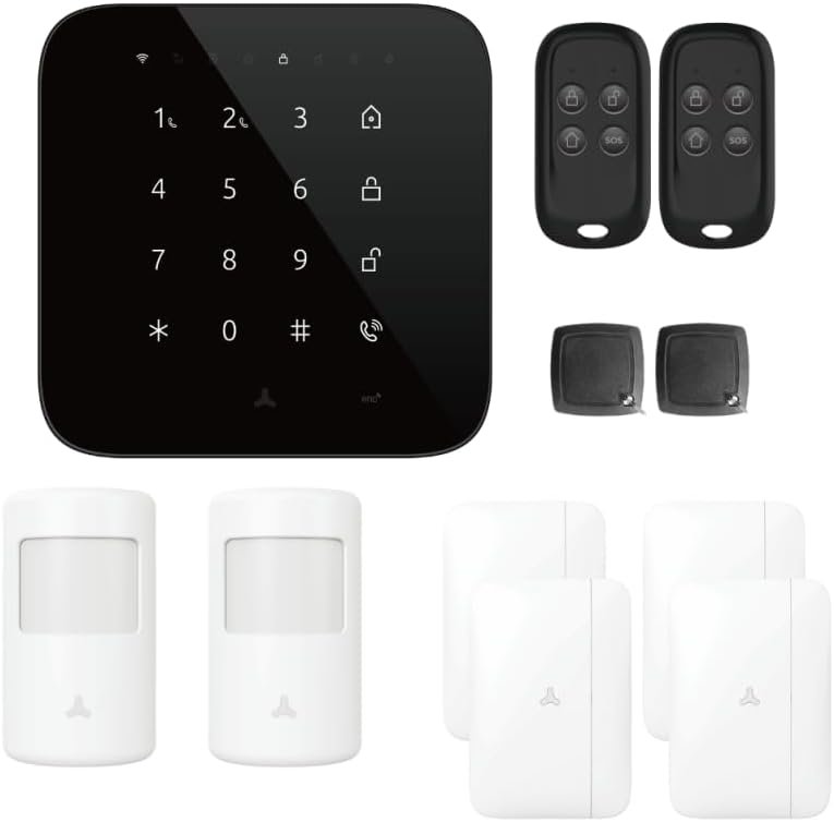 Sistema de alarma completo y ultraconectado Este equipment de seguridad para el hogar conectado hace bien su nombre. El central es un teclado central y sirena incorporada. Se conectarán hasta 50 accesorios como detectores de apertura de puertas y ventanas, detector de agua, sirena exterior…