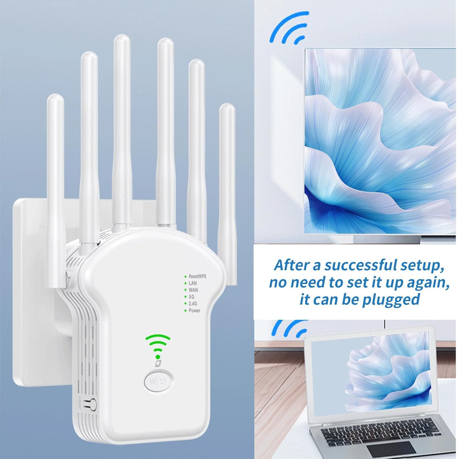 Amplíe el alcance de su WiFi utilizando este potente amplificador de señal de largo alcance equipado con tecnología de doble banda. Supreme para el hogar, sótano, autocaravana, exteriores y entornos laborales, ofrece un rendimiento inalámbrico de alta velocidad sin interrupciones ni limitaciones. Este amplificador de señal WiFi asegura una conexión confiable en todas las áreas clave. Su diseño multifuncional resuelve los problemas habituales de conectividad en diversas situaciones cotidianas. Perfecto para mantener su purple estable y eficiente en cualquier lugar.