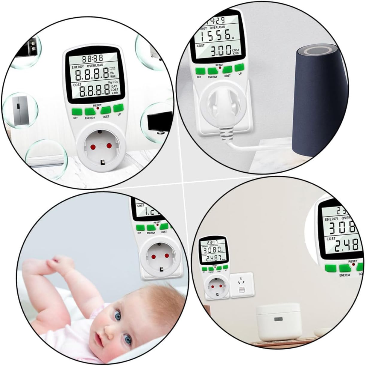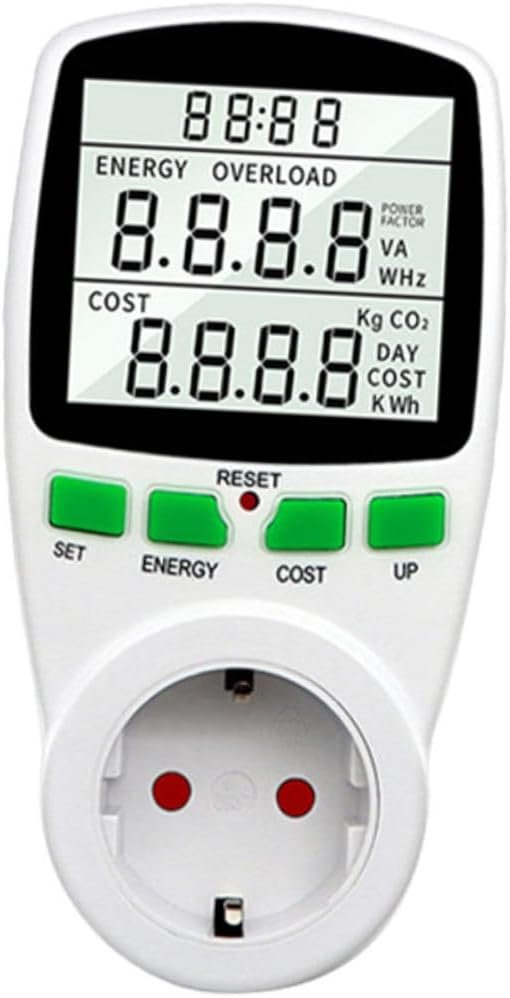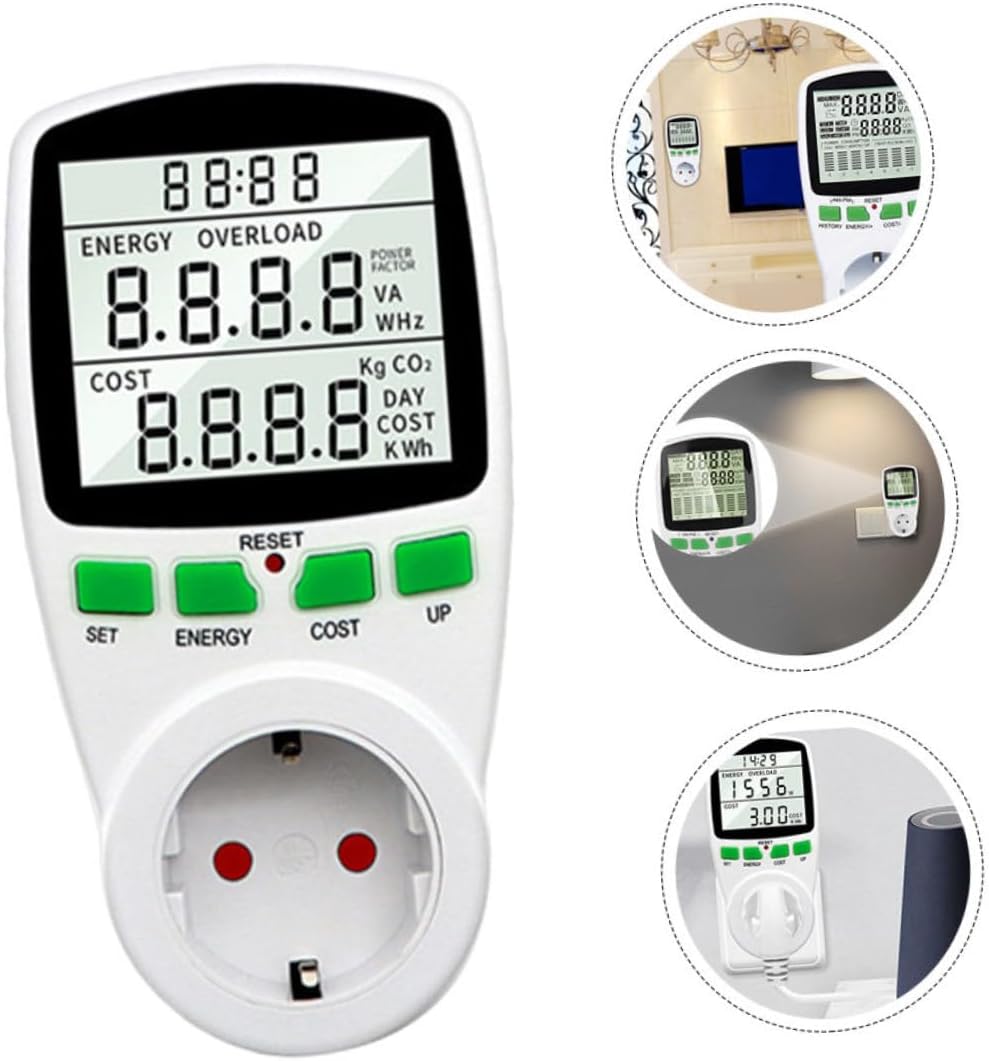 Analizador de monitor de USO de Electricidad Este Dispositivo Puede Ayudarlo A Encontrario El Consumo de Electricidad de Su Refrigerador, Televante, Secadora y Lavadora, Horno Microondas, Computera, Impresora y Cualquier Otro Electrodomísstico. Medidor de Amperios de Voltaje de Vatios de Potencia Mudra El Consumo en Detalle. Monitor de USO de Electricidad Simplemento Conéctelo al Tomacorriente y Luego Póngalo en Él. Monitor de Energía Digital ¿Aún se Preocupa por la Factura de Energía y No Sabe CÓMO Monitorear El Costo? Monitor de Uso de Electricidad en Vatios Nota: Este Artículo Viene Con, Confirme El VoltaJe de Su Área Antes de