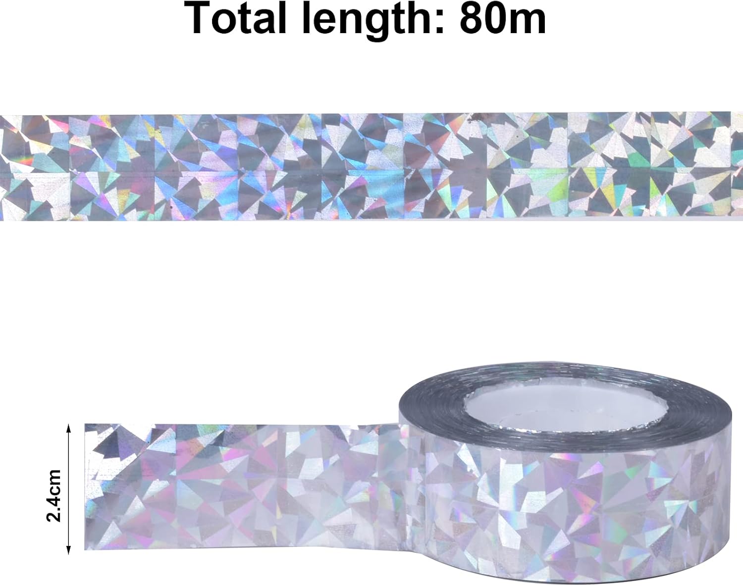 ✿tamaño: 2,4 cm x 80 m, Cantidad del Paquete: 1 x Cinta para Asustar Pájaros, Se Puede utilizar Para Decoración del Hogar, Jardines, Céspedes, Estances