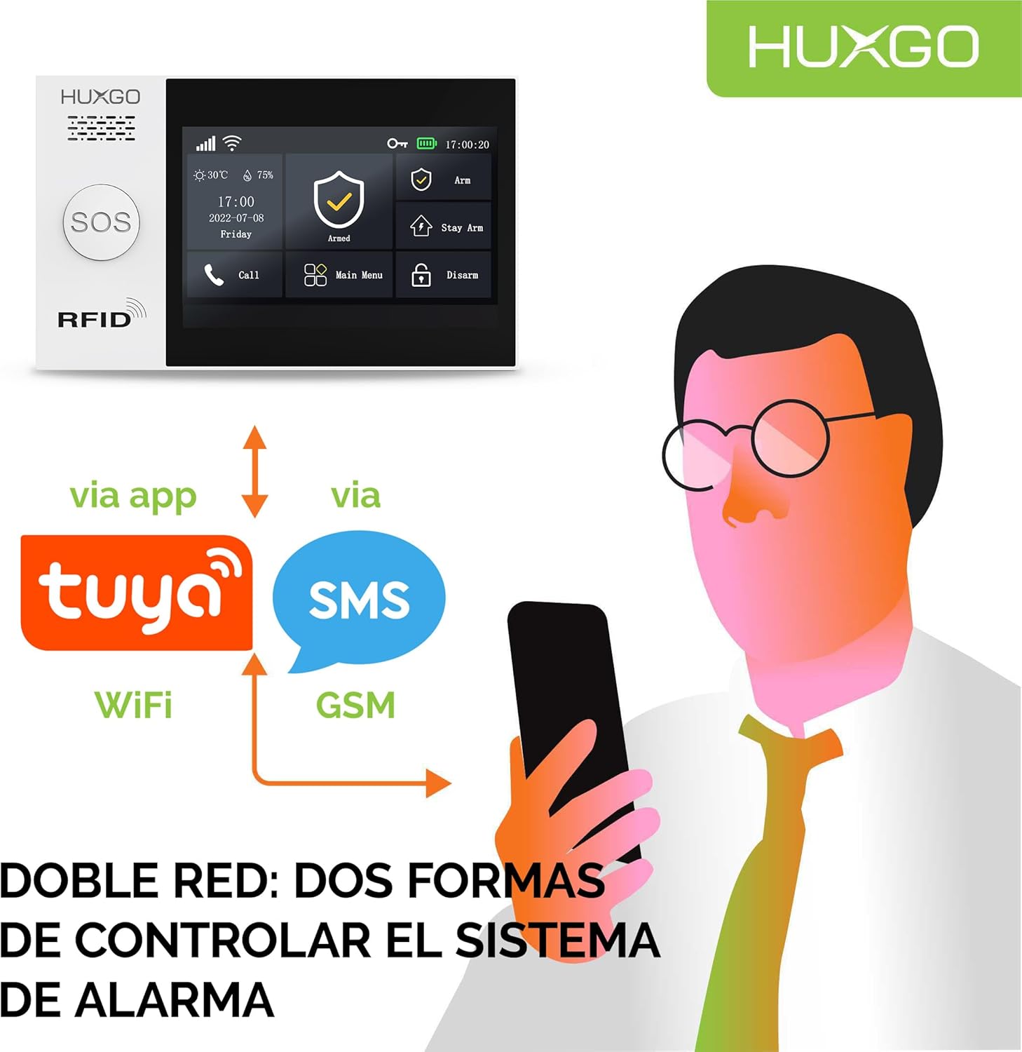 CONTROL 24/7: Dos módulos (WIFI y GSM 4G) te permiten controlar la alarma de casa desde tu teléfono en cualquier momento a través de la aplicación móvil TUYA Sensible o mensajes de texto. El módulo 4G ofrece un alcance mejorado (también admite redes 3G y 2G). Menú de alarma e instrucciones en español.