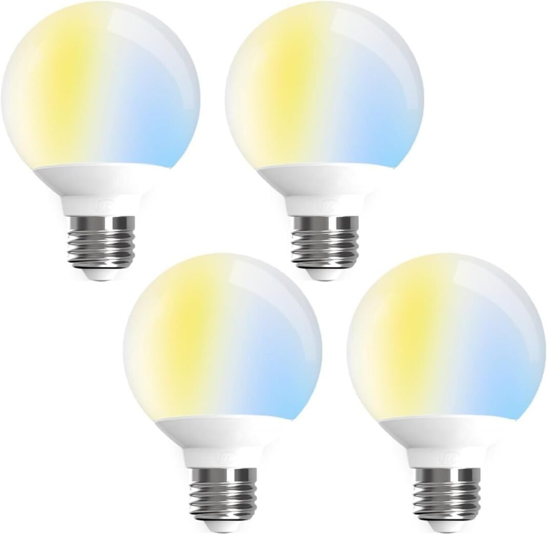 iLC LED G80 Bombilla inteligente Alexa LED E27, suitable con Alexa (se necesitan dispositivos Echo), bombilla CCT de 6 W 2700 Ok-6000 Ok, adecuada para sala de estar, dormitorio (paquete de 4)