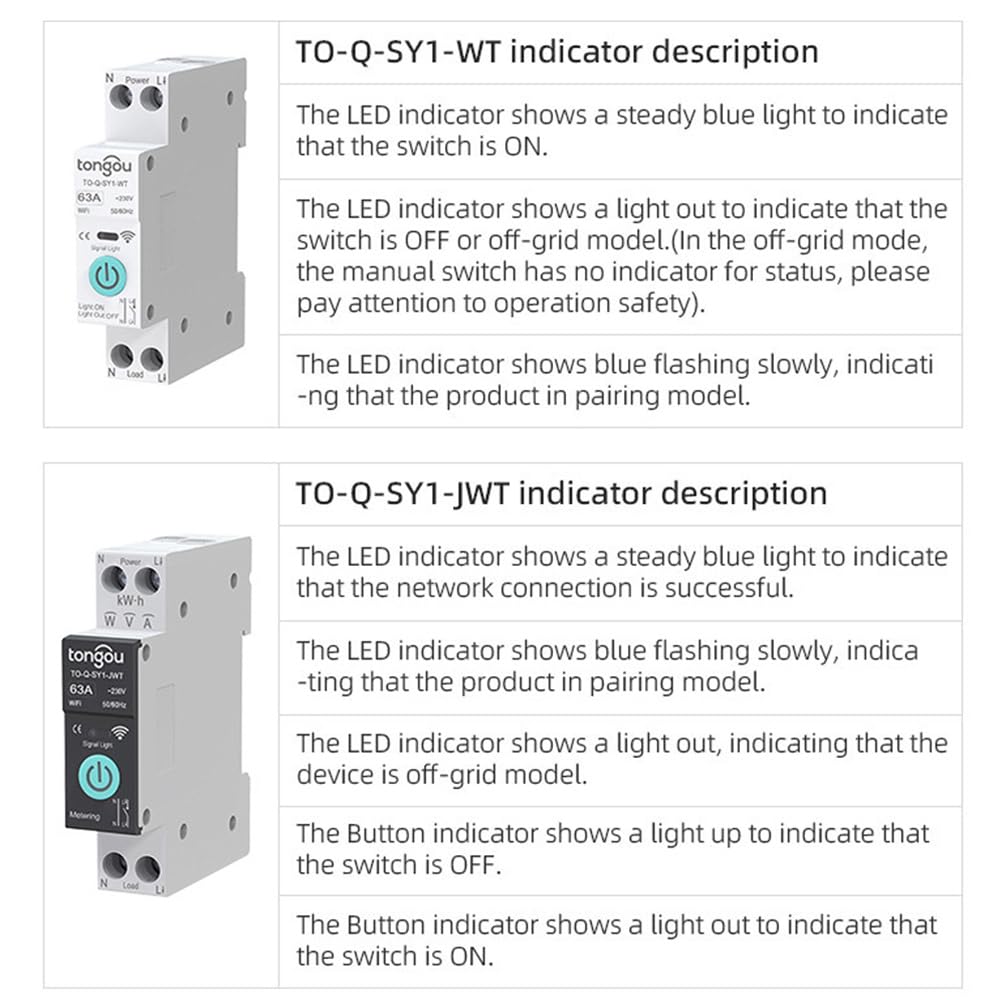 Especificaciones: Con medición/sin medición opcional. Voltaje de funcionamiento: AC90-280V, 50/60Hz. Tipo de corriente: 6A 10A 16A 20A 25A 32A 40A 50A 63A. Programación/ sincronización, cuenta regresiva, sincronización del ciclo. Management de voz por Alexa echo dot / Asistente de Google Management remoto en cualquier momento desde cualquier lugar mediante la aplicación TUYA/Sensible Life en el móvil, sin límite de distancia. Nota: 1.Debido a la diferencia de luz y pantalla, el shade del artículo puede diferir ligeramente de las imágenes. 2.Permita diferencias de 1 mm a 1 cm debido a la medición guide. Paquete: 1x Disyuntor