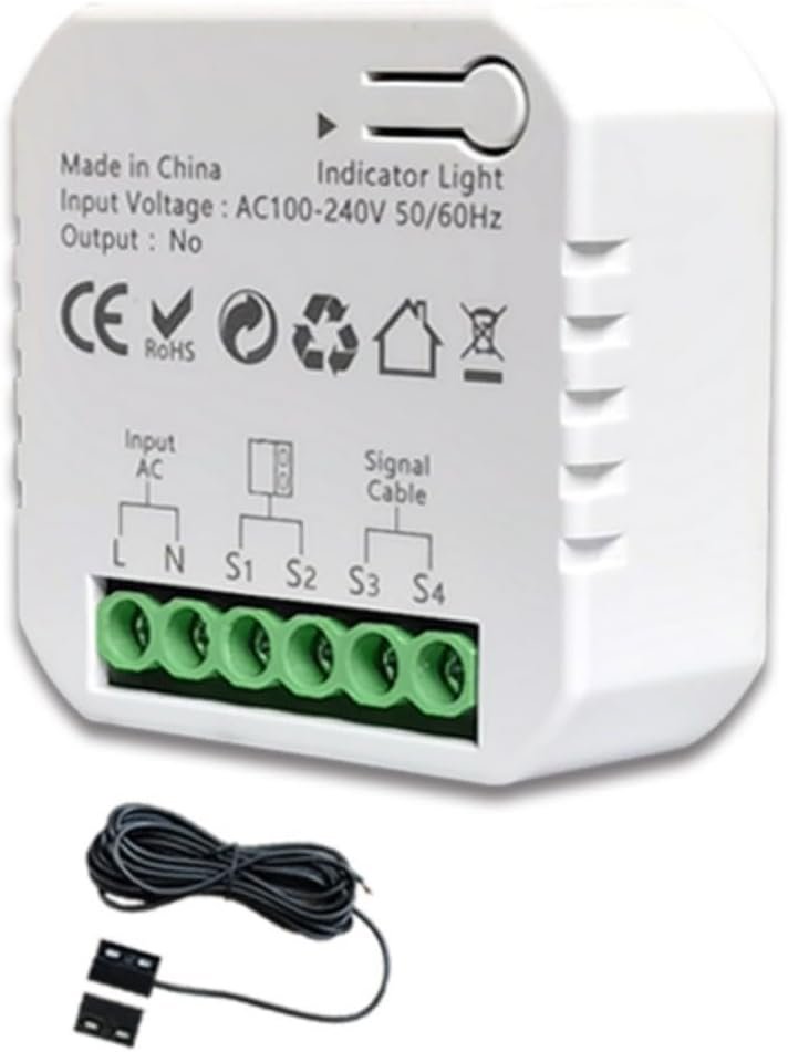 Compacto y eficiente: nuestro abridor de puerta de garaje habilitado para WiFi cuenta con un diseño compacto con dimensiones de 46 x 46 x 18 mm. Funciona con entrada de alimentación de CA 110-240 V/50/60 Hz. Actualiza este controlador inteligente y experimenta la comodidad del management inalámbrico para la puerta de tu garaje.