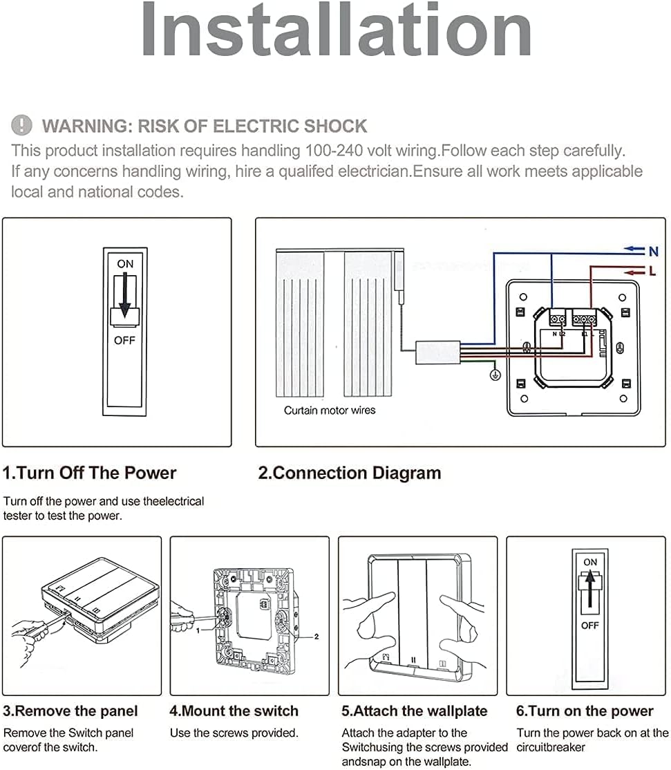 【Management remoto y horario】 conecta tu interruptor de cortinas un wifi 2.4 ghz y desde la aplicación inteligente management de vida la apertura o el cierre de una o un grupo de cortinas, además crea horario y temporizores. Comparte TU Sensible Change con Tus Familiares y Amigos.