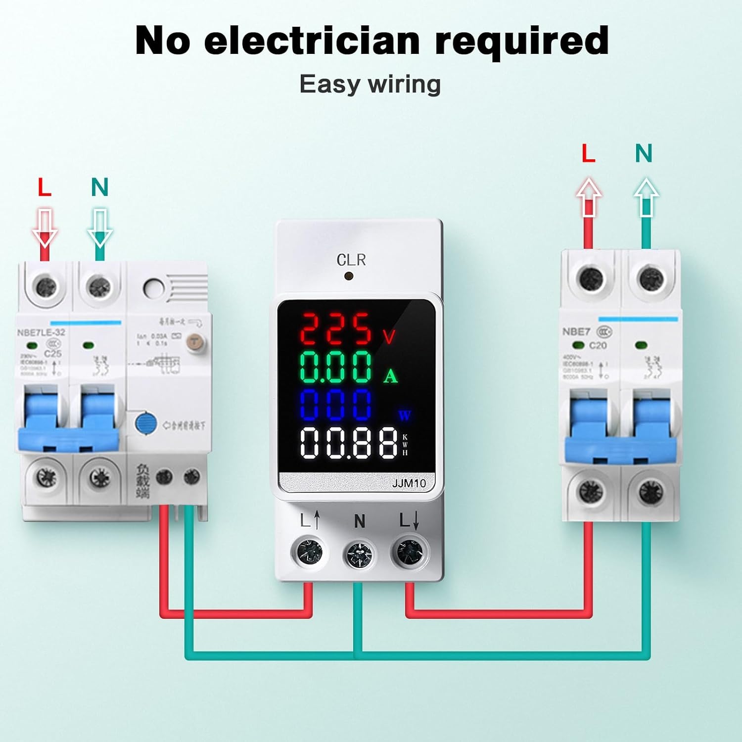 3.【Amplia Aplicación】Riel DIN de 35 mm, fácil de instalar, el medidor de energía puede ampliamente utilizado para monitores de uso de electricidad residencial, de alquiler, resort, edificio de oficinas, centro comercial y hogar.