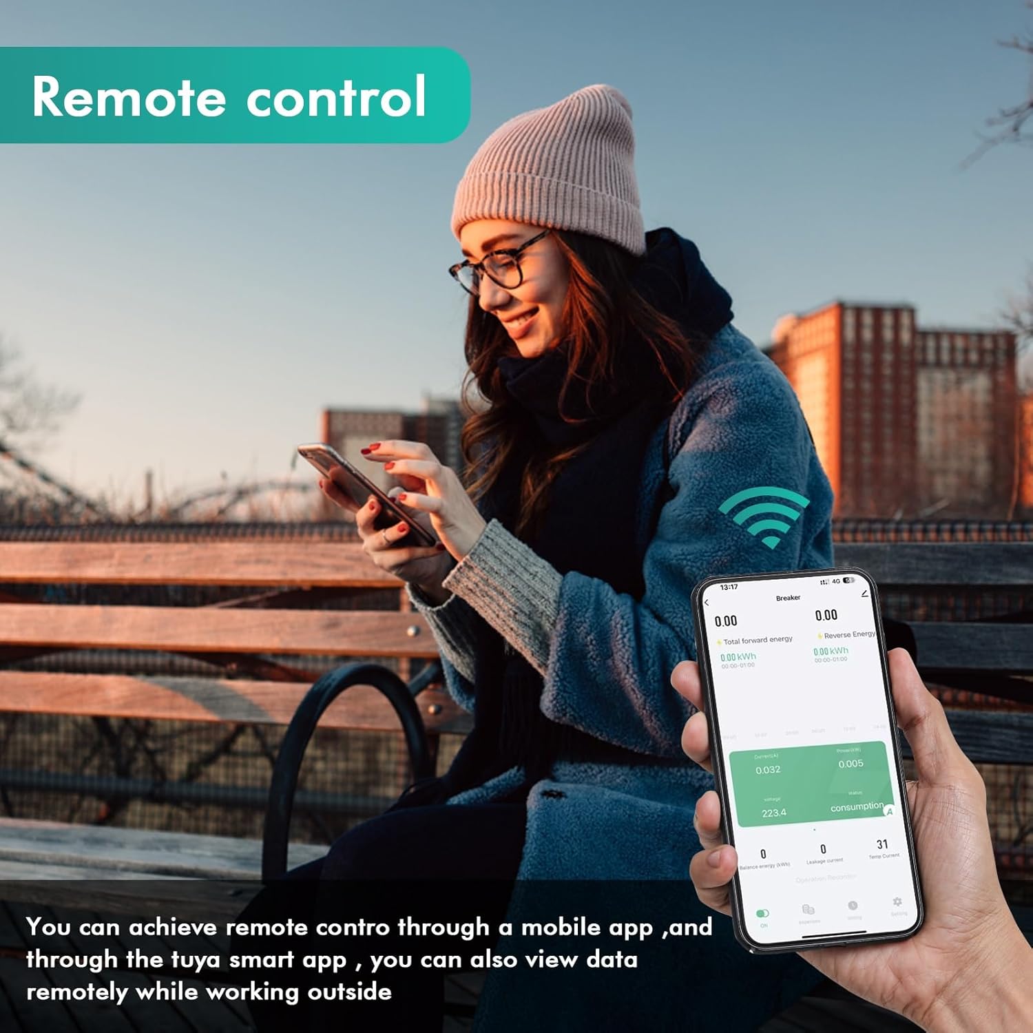1. Medidor de energía inteligente: conecte dispositivos en estado WiFi, la aplicación inteligente Tuya controla distancia ilimitada, visualización en tiempo actual de potencia, corriente, voltaje, fugas, frecuencia, energía acumulada y otros datos.