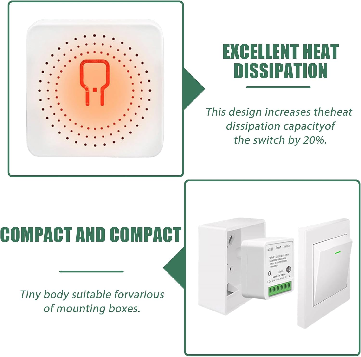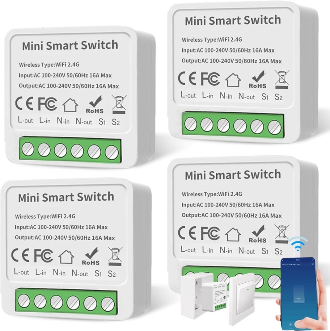 Interruptor inteligente: un módulo mini interruptor de luz inteligente de 1 vía, que se puede instalar detrás de un interruptor existente para convertir un interruptor convencional existente en un interruptor inteligente. Requiere cable neutro, CA 100-240 V, máx. 16 amperios