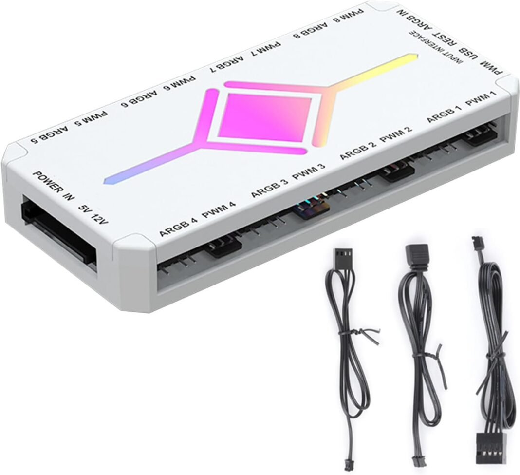 Argb Fan Hubs: admite interfaces 8x4pin y 5v 3pin argb para buardar su espacio manera efectiva y facilitar gestión del cable.