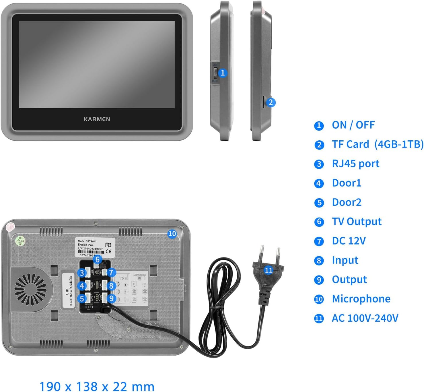 Fácil Instalacia: El Monitor Inside se conecta a los cables de mediano rojo wifi / rj45; El Timbre Exterior se conecta al monitor de cables interiores de mediano;