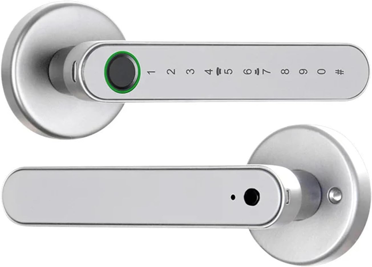 El desbloqueo inteligente 5 en 1 permite un acceso seguro a su hogar a través de la aplicación Tuya Sensible (management remoto), huella digital (100), ranura de contraseña de pantalla táctil (100 juegos), tarjeta IC o llave mecánica tradicional.