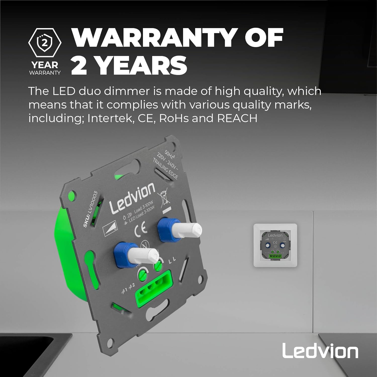Ledvion-placa de cubierta del interruptor de atenuación Led, para dos bombillas Led universales de 3, 100W, incluye adaptador