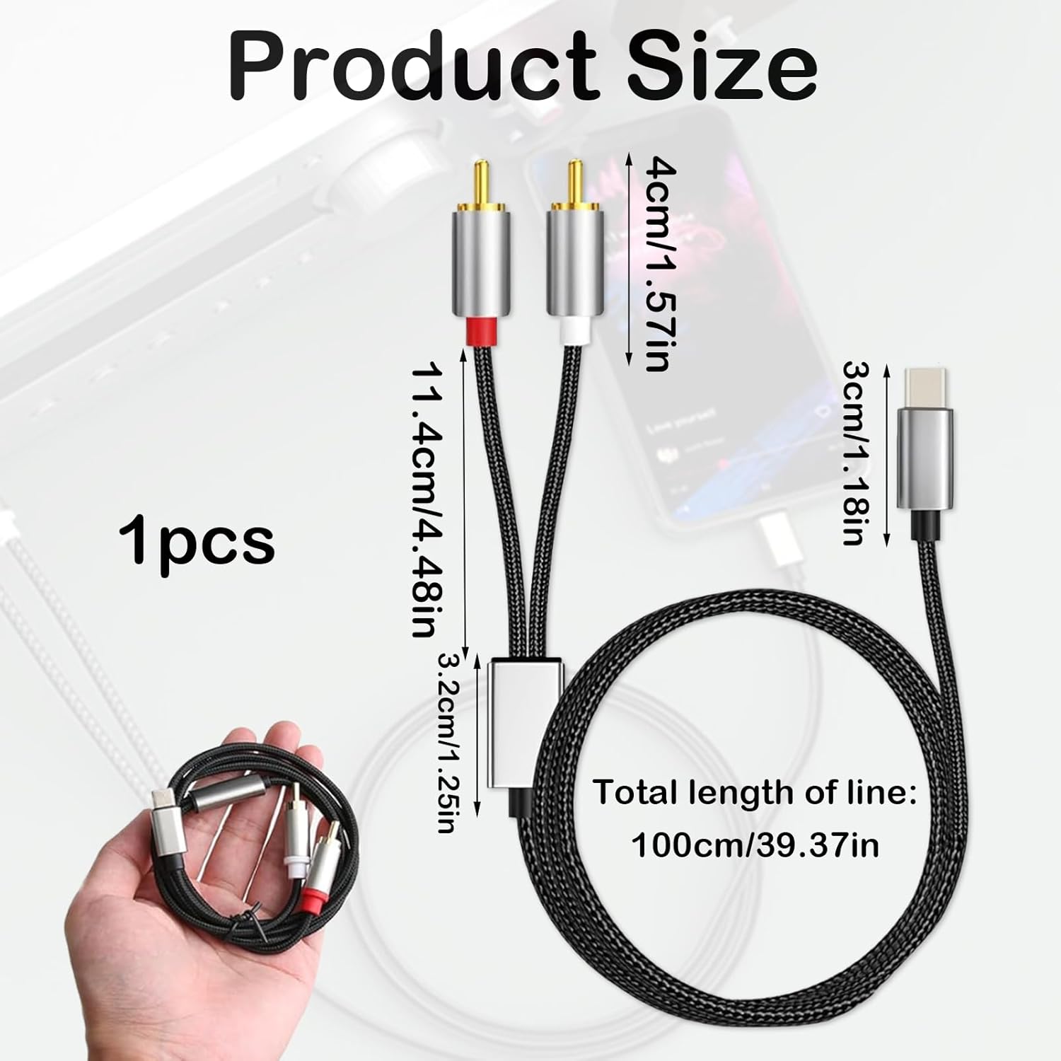 【Contenido del paquete】 1 cable de audio USB C a 2 RCA (nylon trenzado, chapado en oro)