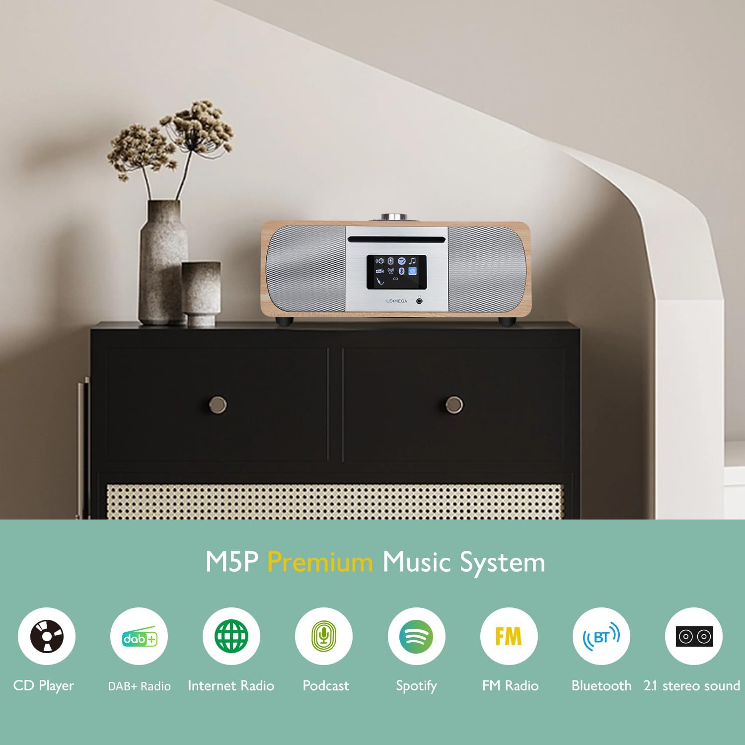 Lemega M5P Equipo de Música (Reproductor de CD, Radio Dab por Web, DAB+, FM, Transmisión Bluetooth, Spotify Join, Aux, USB, Alarma Sleeptimer, Mandos A Distancia), Roble Blanco