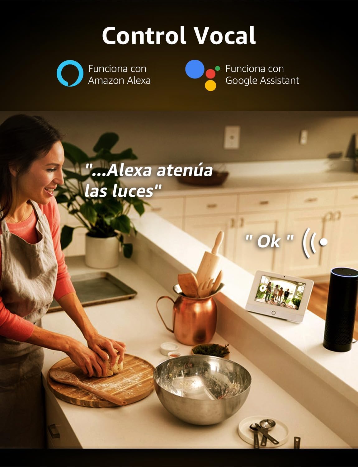 Controla su bombilla inteligente a través de su voz con Amazon Alexa (Echo/Dot/Faucet) y Google Dwelling (Asistente de Google). No requiere concentrador y es fácil de instalar.