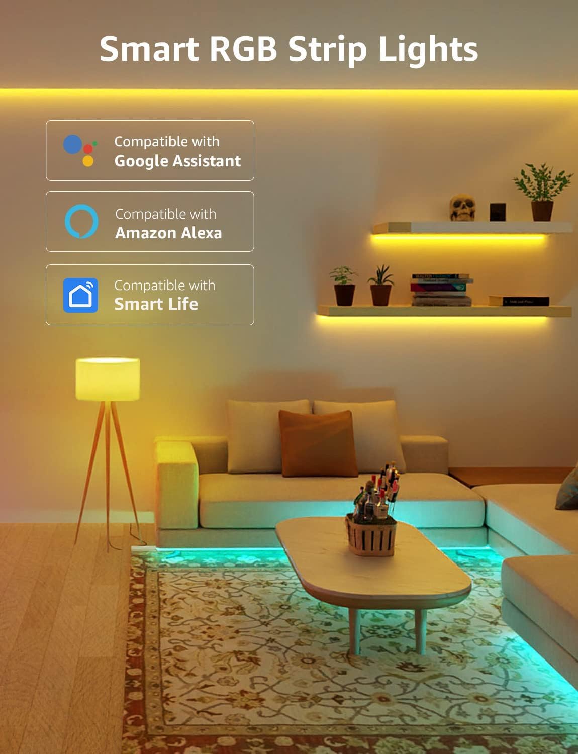 【Management Remoto por Voz】: Tira led inteligente 2*5m appropriate con Alexa / Google House, puede proporcionar management de voz de forma remota, liberar sus manos, sin necesidad de activar, desactivar o cambiar los colores en persona.