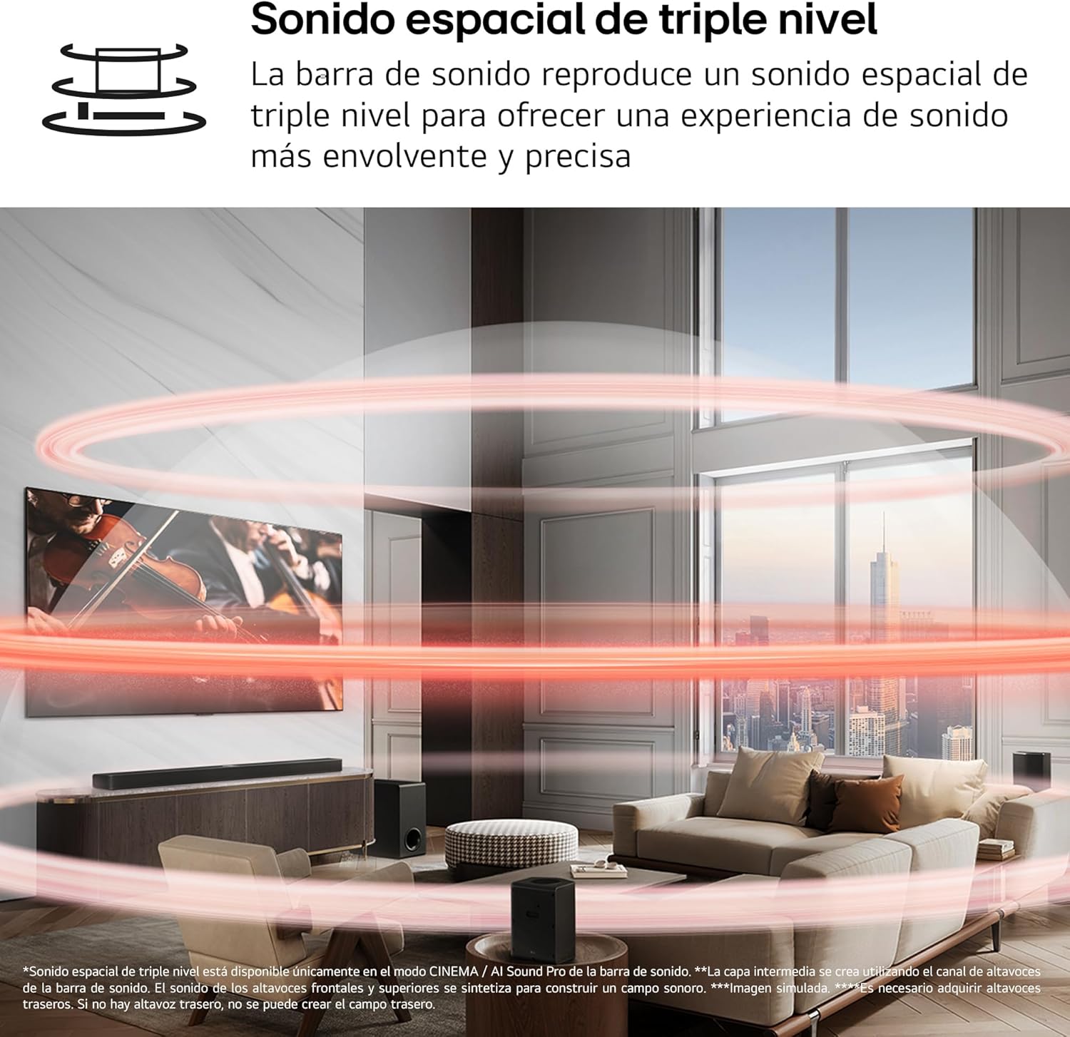 Barra de Sonido Con Inteligencia Synthetic IA: Sonido Inteligente que se adapta a la Estacia Gracias A ia Room Calibration Ya Cada Contenido Optimizando La Configuración del Audio Con ia Sound Professional, Ademán Conecta y Controla tu Hogar Con Los Asistentes de Voz de ia: Airplay2 Airplay2 , Spotify Join, Tidal Join, Google y Alexa (5).