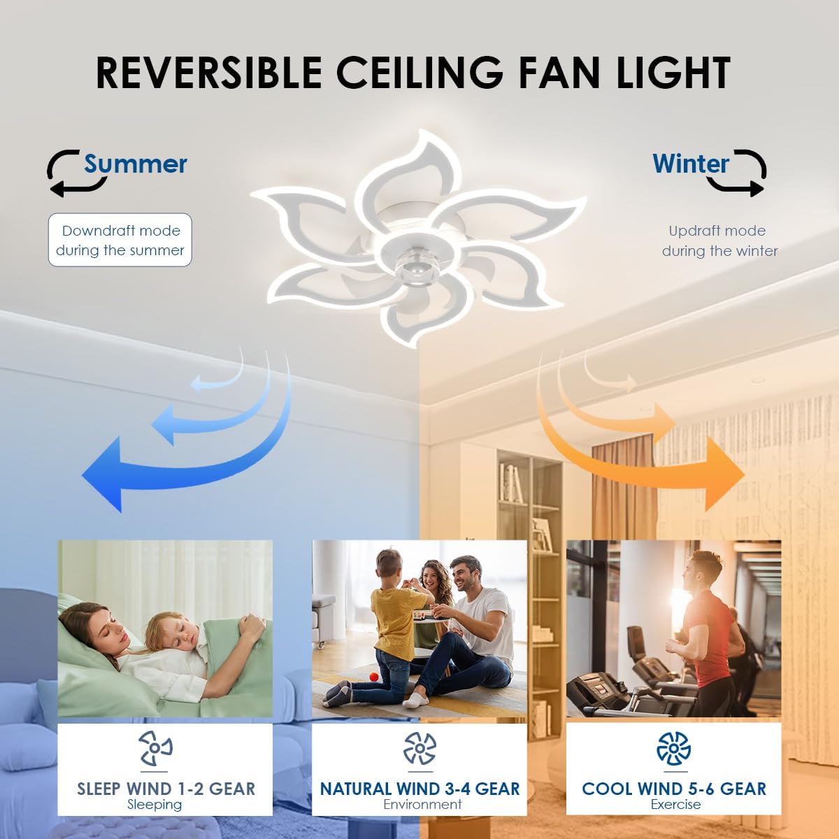 🌱 【Uso durante todo el año】 El diseño inteligente reversible de las lámparas ventilador de techo garantiza que tu entorno doméstico se sienta como primavera durante todo el año. En verano, el ventilador trae aire fresco, disipando el calor. En invierno, se invierte para round un flujo de aire cálido, creando un ambiente hogareño acogedor y cómodo. Este diseño eficiente en energía no solo beneficia tu comodidad, sino que también contribuye a la conservación del medio ambiente.