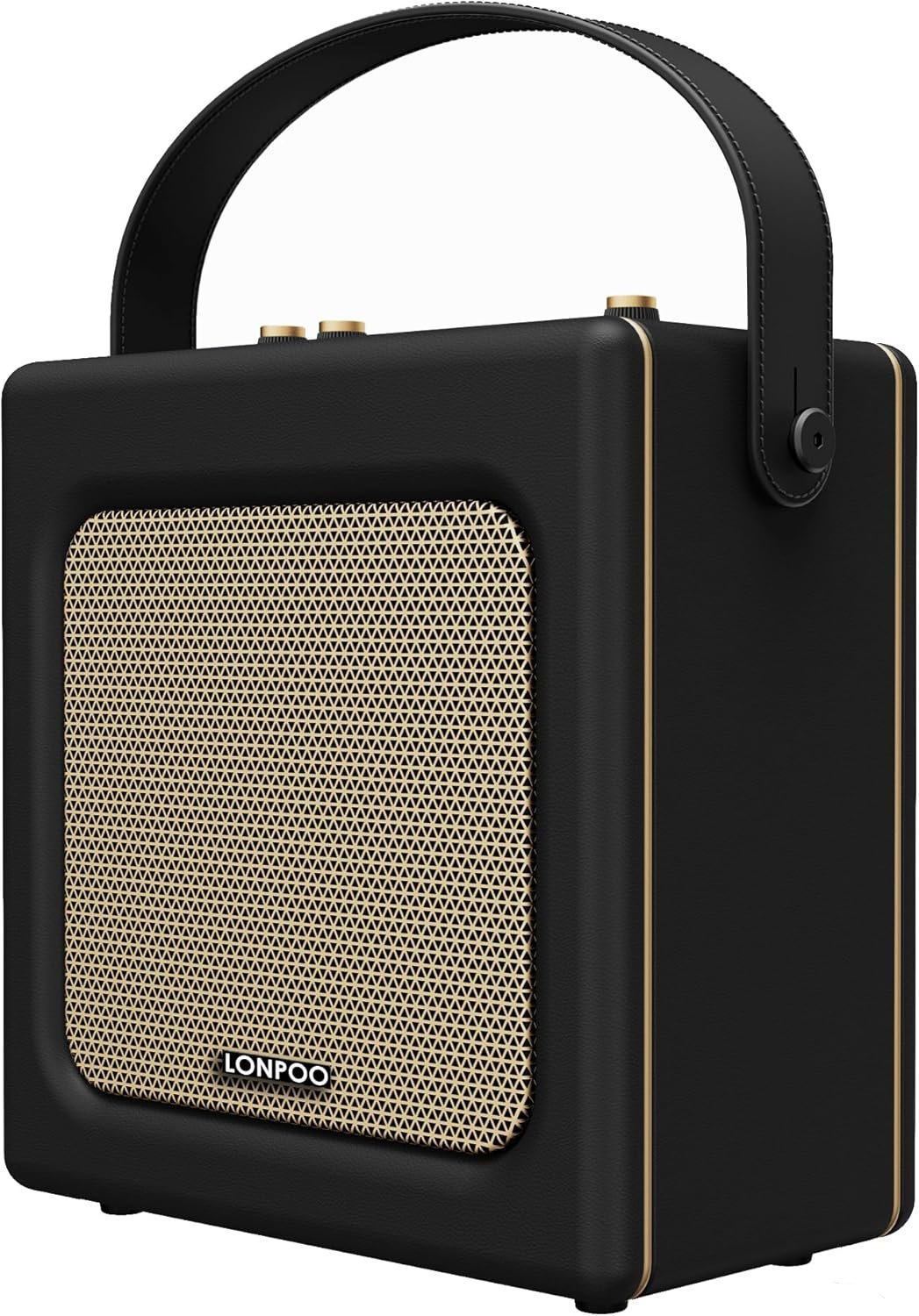 Diseño Retro, Aspecto Exquisito: Este Altavoz, Fabricado Con Malla Dorada y Un Diseño Con Acabado en SÍmil de Cuero Negro, Combina Sin Esfuerzo la Estética Classic Con la Funcionalidad Moderna. Sumérjase en el Encanto Nostálgico de este Altavoz Bluetooth Retro.