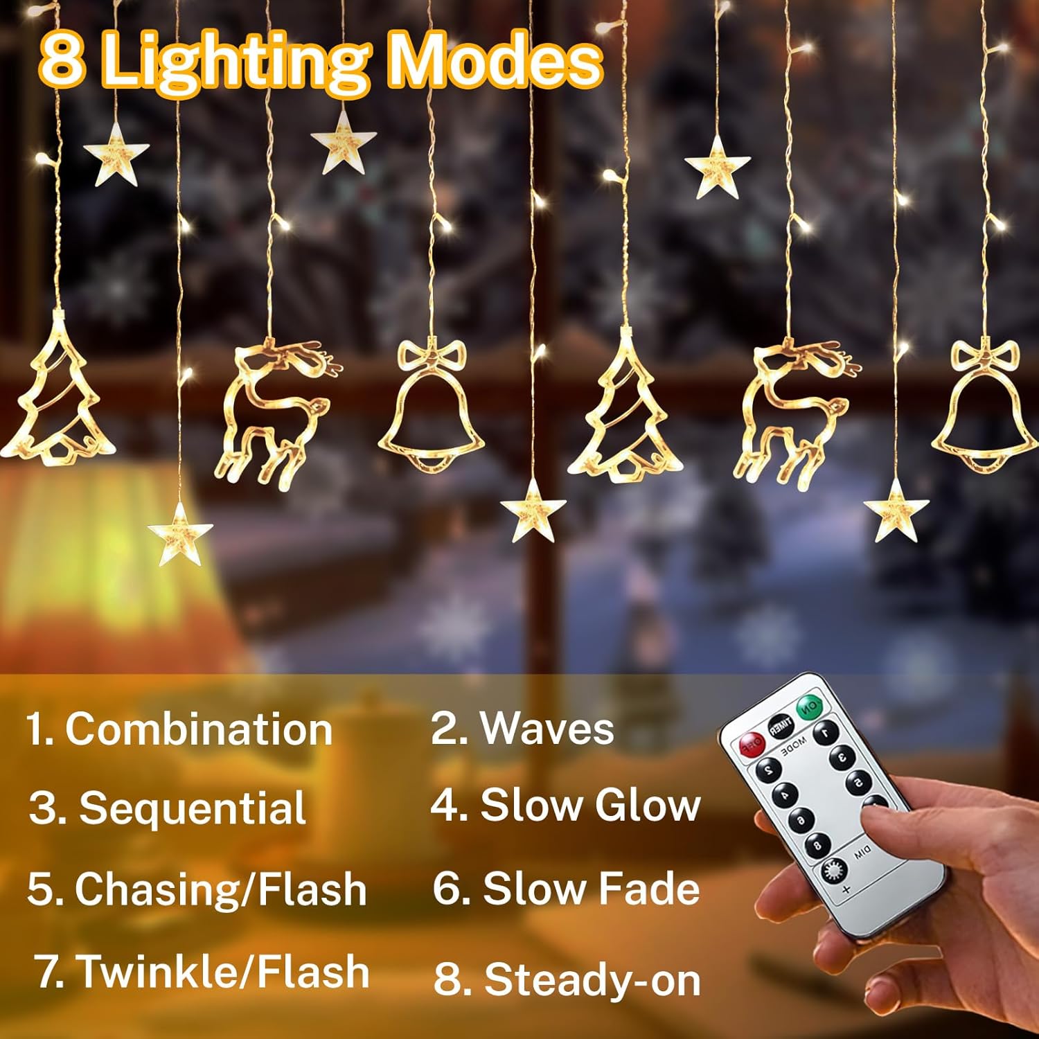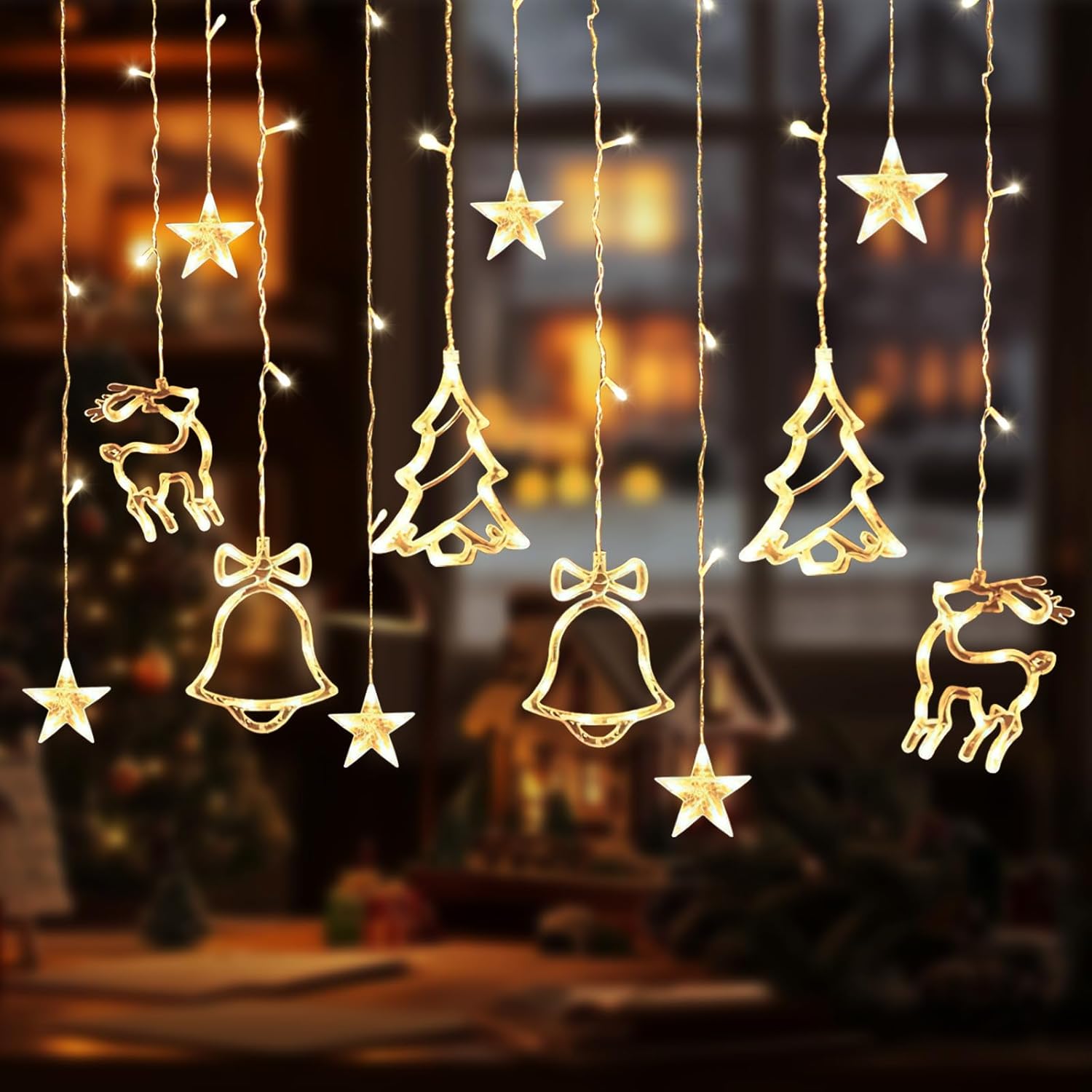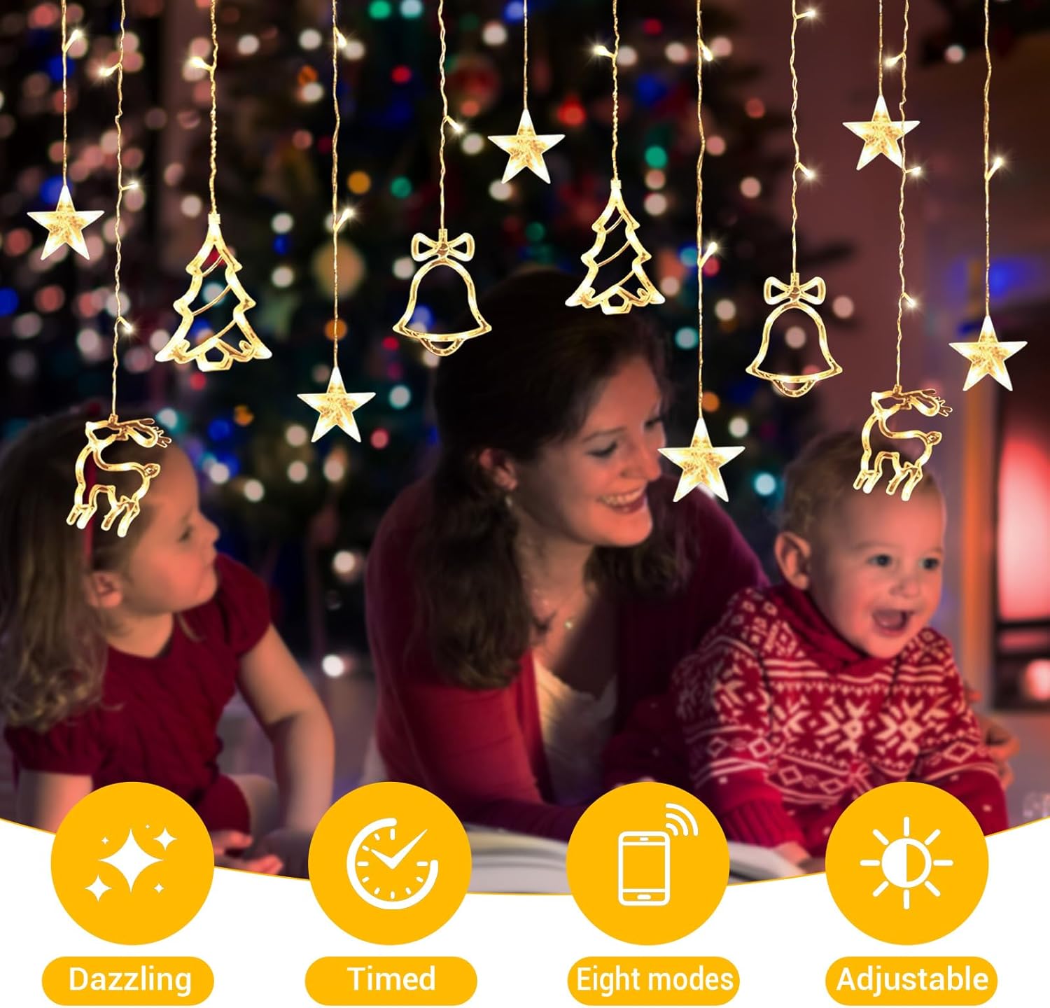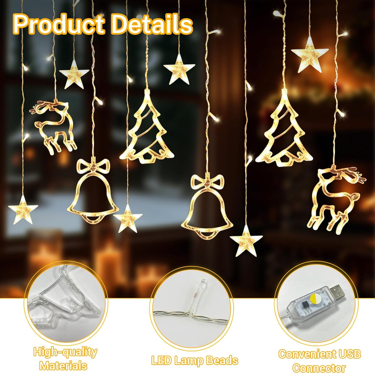 【Seguro, duradero y fácil de instalar】Luces navideñas para ventanas. El diseño de seguridad de bajo voltaje de 220 V y el diseño impermeable IP44 a prueba de heladas son resistentes al frío y a la humedad. Se puede ampliar fácilmente para decorar fácilmente ventanas, paredes, árboles de Navidad y más.