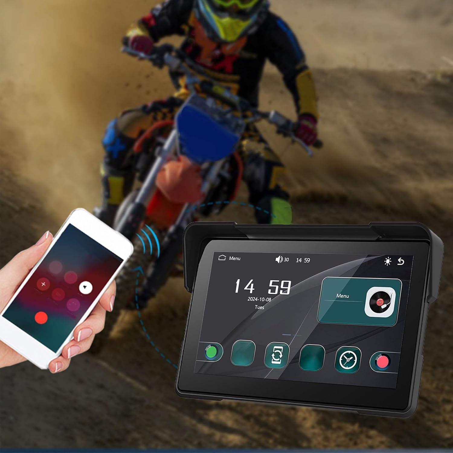 1. Acceso conveniente: Integración perfecta de motocicleta para CarPlay, mejorando su experiencia de manejo mediante un fácil acceso a la navegación, la música y las llamadas. El chip de detección de luz ajusta automáticamente el brillo de la pantalla para una visibilidad óptima en cualquier condición de iluminación.