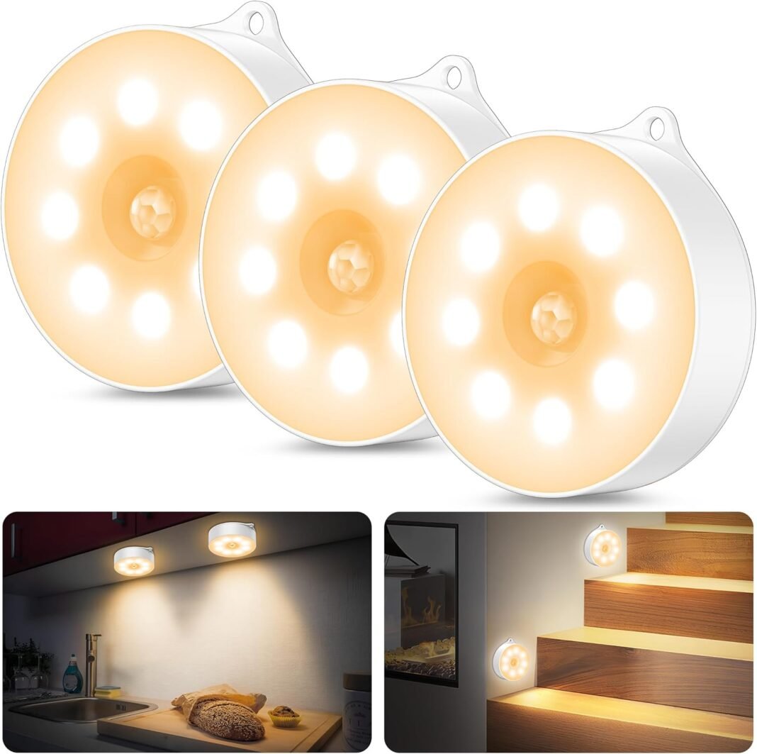 Ampliamente utilizado: estas luces portátiles con sensor de movimiento las hacen ideales para agregar luz adicional en cualquier lugar que lo necesite, desde cocinas y dormitorios hasta escaleras, sótanos, áticos, garajes, armarios, cajones, y más.