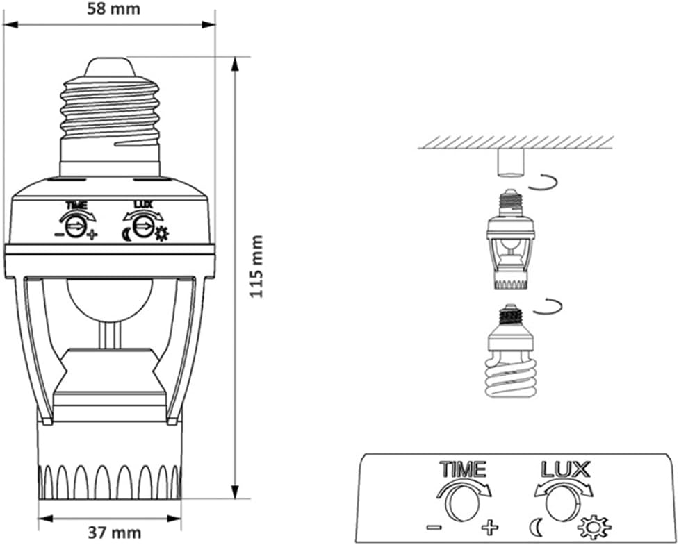 Portalámparas para automatizar la iluminación en la escalera, el sótano, and many others. Tiempo de funcionamiento regulable.