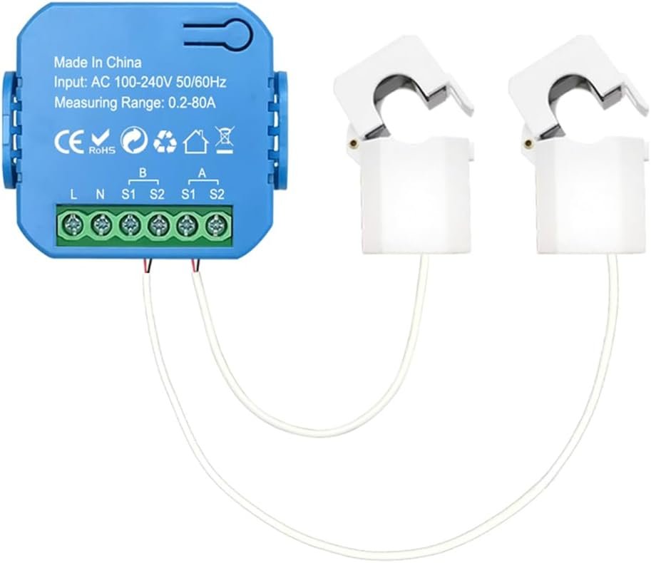 Medidor de Energía Inteligente de Doble Canal Tuya Wifi Con 2 Abrazaderas 80 A: Disponible para calibrario 1 Canal y 2 canales Disponibles